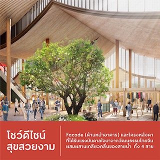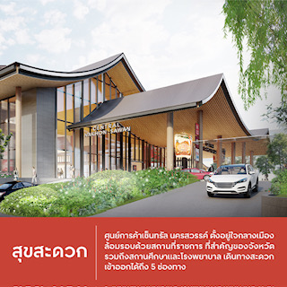 5. จาก Local Essence สู่การครีเอทดีไซน์ศูนย์ฯ : หยิบไอคอนิก ‘ปากน้ำโพ’ ที่มีแม่น้ำ 4 สายไหลมาบรรจบกัน ผสมผสานกับ ‘Thai-Chinese Culture’ เพื่อดีไซน์ Façade (ด้านหน้าอาคาร) และโครงหลังคา ให้เป็นสถาปัตยกรรมร่วมสมัยและมีความโดดเด่น พร้อมสร้าง Good Vibes Ambience บริเวณโดยรอบศูนย์การค้าฯ ด้วย ‘ต้นเสลา’ สีม่วงชมพูสลับขาว ซึ่งเป็นต้นไม้ประจำจังหวัดนครสวรรค์