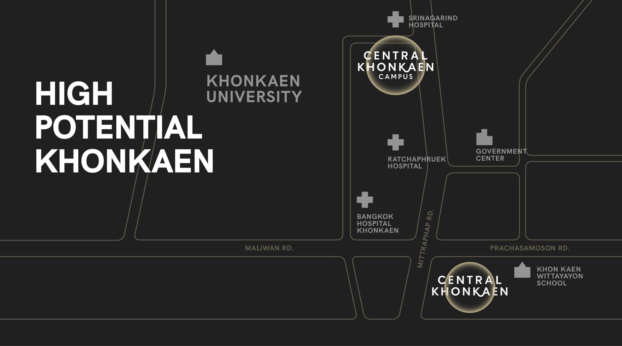 โครงการมิกซ์ยูส ‘Central Khonkaen Campus’ (เซ็นทรัล ขอนแก่น แคมปัส) ศูนย์การค้าเซ็นทรัลแห่งที่ 2 ของขอนแก่น ซึ่งเป็นจังหวัดที่มีกำลังซื้อสูง ทำเลศักยภาพสูงบนย่านการศึกษาและโรงพยาบาลสำคัญของเมือง บนพื้นที่ 30 ไร่ มีพื้นที่ศูนย์การค้า (GBA) 67,000 ตร.ม. โดยจะสร้างปรากฏการณ์ให้กับเมืองเป็น The New Dimension of Lifestyle ตอบโจทย์ Urban lifestyle ผสาน Local Wisdom สะท้อนความภูมิใจของจังหวัด โดยจะเปิดช่วง Q2 ปี 2569 และแผนพัฒนาคอนโดรูปแบบใหม่ และ GO! Hotel แห่งแรกของอีสาน