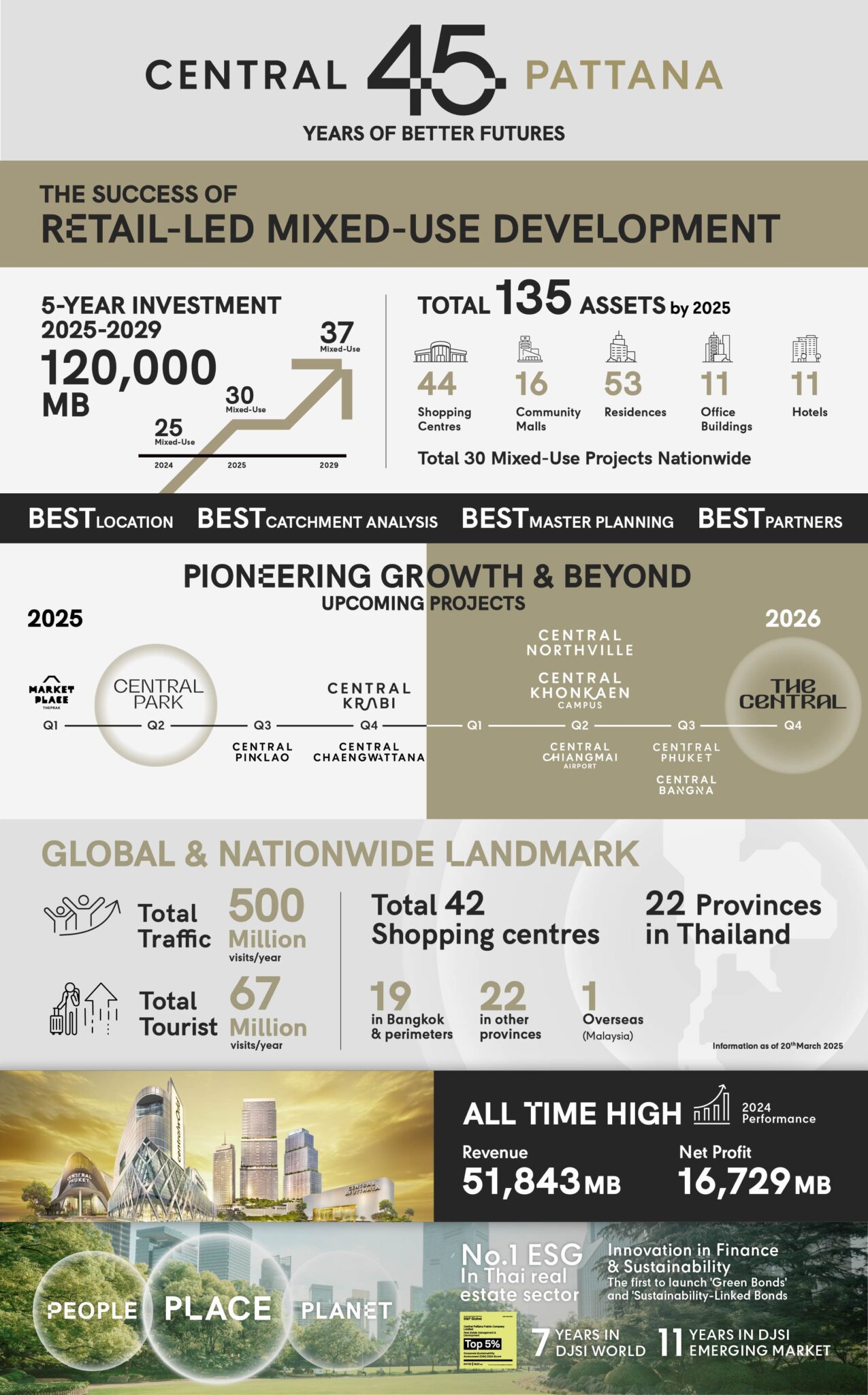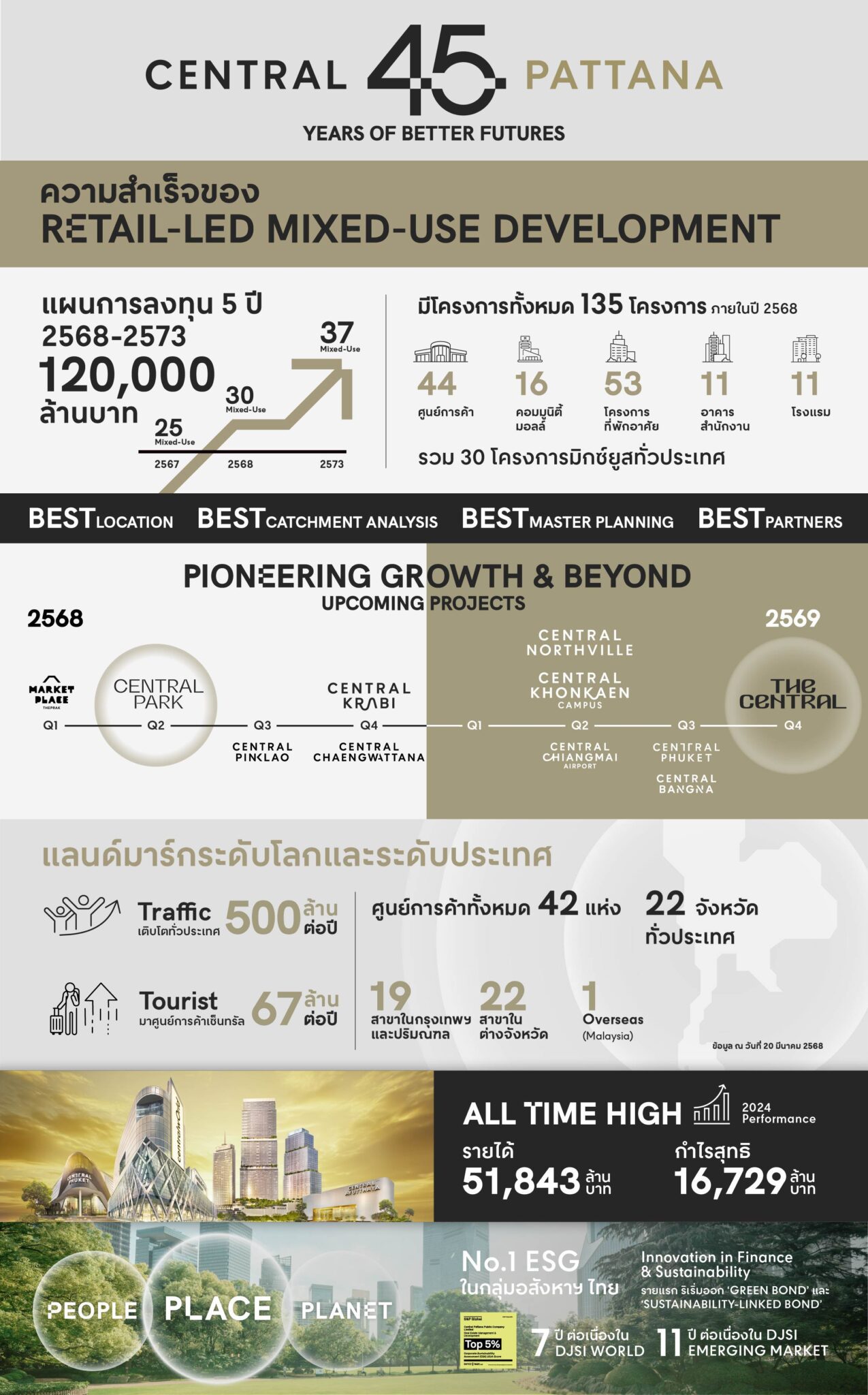 ‘The Central’ พหลโยธิน (เดอะ เซ็นทรัล) เป็น The Future Place for All ตั้งอยู่บนที่ดินกว่า 49 ไร่ มีพื้นที่ศูนย์การค้า (GBA) 460,000 ตร.ม. ศูนย์การค้าระดับ Flagship แห่งอนาคตที่จะรองรับไลฟ์สไตล์ใหม่สำหรับทุกคน เป็น Gateway ดึงดูดดีมานด์ใหม่จาก Catchment กรุงเทพฯ ตอนบน และ Quality Shoppers จากจังหวัดใกล้เคียง โดยจะเติบโตควบคู่กับ เซ็นทรัล ลาดพร้าว ซึ่งเป็นมิกซ์ยูสแห่งแรก และเป็นแลนด์มาร์กของย่านมาพร้อมกับที่เราก่อตั้งบริษัทฯ มา 45 ปี เราจึงเข้าใจผู้บริโภคเป็นอย่างดี ปัจจุบันมีดีมานด์ที่เติบโตจากความหนาแน่นของประชากรที่เพิ่มขึ้น และกลุ่มลูกค้าใหม่ จึงมีศักยภาพที่พร้อมสำหรับการมีศูนย์การค้าเซ็นทรัล 2 แห่ง ซึ่งจะช่วยเติมเต็มและส่งเสริมความเจริญของย่านนี้ โดย The Central พหลโยธิน จะดึงดูด Global Brands มาเปิด Flagship Store ครั้งแรกในไทยเช่นเดียวกับที่ประสบความสำเร็จมาแล้วที่เซ็นทรัลเวิลด์ โดยเตรียมเปิดช่วง Q4/2569 และยังมีแผน Development เพิ่มเติมในอนาคต