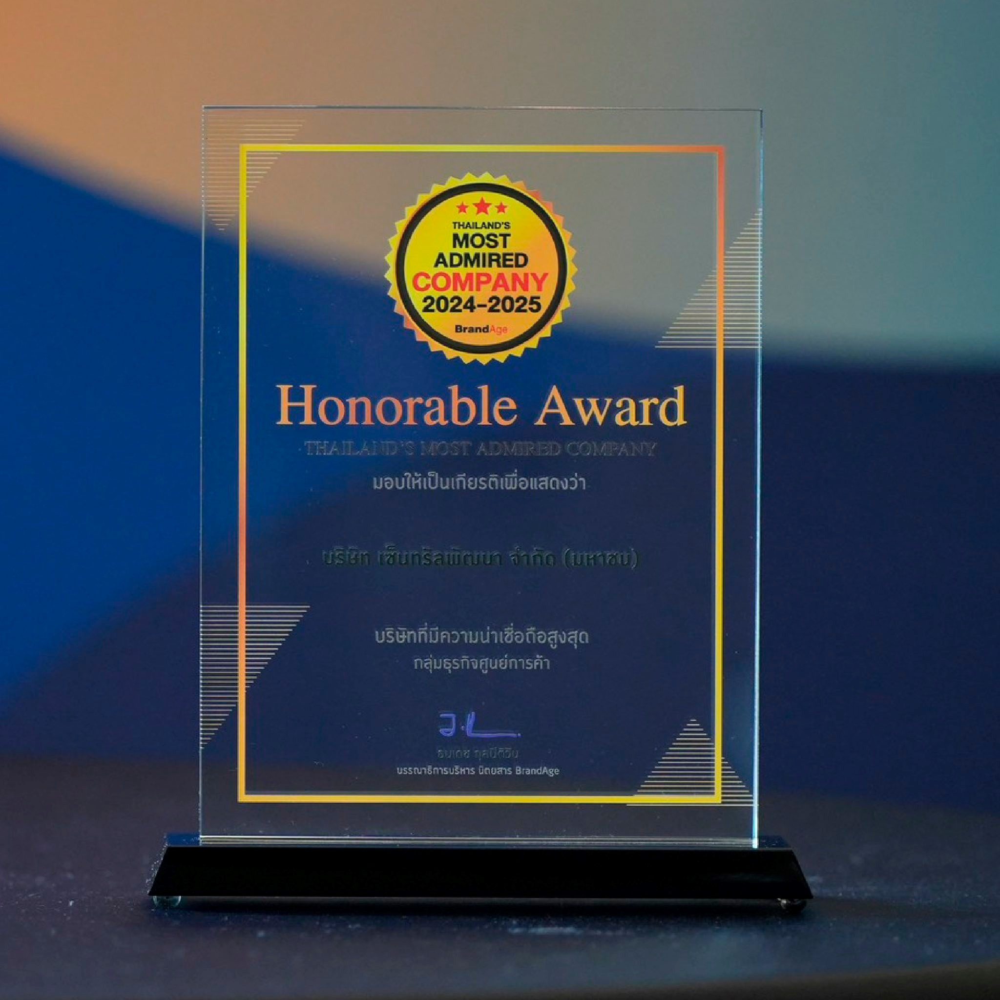 บริษัท เซ็นทรัลพัฒนา จำกัด (มหาชน) ผู้นำเบอร์หนึ่งอสังหาริมทรัพย์ไทยเพื่อความยั่งยืน ตอกย้ำความสำเร็จโมเดลธุรกิจ ‘The Ecosystem for All’ สะท้อนวิสัยทัศน์ผู้นำอสังหาฯ ไทยและความมุ่งมั่นที่จะเป็นแบรนด์อันดับหนึ่งในใจคนไทย คว้ารางวัลยิ่งใหญ่ 2024-2025 Thailand’s Most Admired Company ต้นแบบของสุดยอดองค์กรแห่งปี ซึ่ง “เซ็นทรัลพัฒนา” ได้รับคะแนนสูงสุดอันดับ 1 บริษัทที่มีความน่าเชื่อถือสูงสุด ในกลุ่มธุรกิจ “ศูนย์การค้า” ต่อเนื่องเป็นปีที่ 3 โดยมีความโดดเด่น 6 ปัจจัย ได้แก่ ความสามารถในการสร้างสรรค์นวัตกรรม, ความสามารถในการดำเนินธุรกิจ, ภาพลักษณ์, การบริหารการจัดการ, ความรับผิดชอบต่อสังคม, การบริการ ซึ่งเป็นหัวใจสำคัญของการประมวลผลที่สะท้อนให้เห็นถึง “ความสามารถ” และ “ความน่าเชื่อถือ” ของแบรนด์ และยังมี Governance ที่มุ่งเน้นไปในเรื่องของความโปร่งใสและการมีธรรมาภิบาลที่ยั่งยืน รางวัลนี้จัดโดยนิตยสาร BrandAge สื่อชั้นนำด้านธุรกิจและการตลาดของไทย