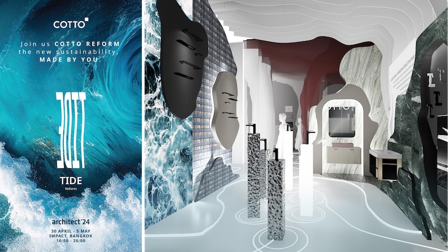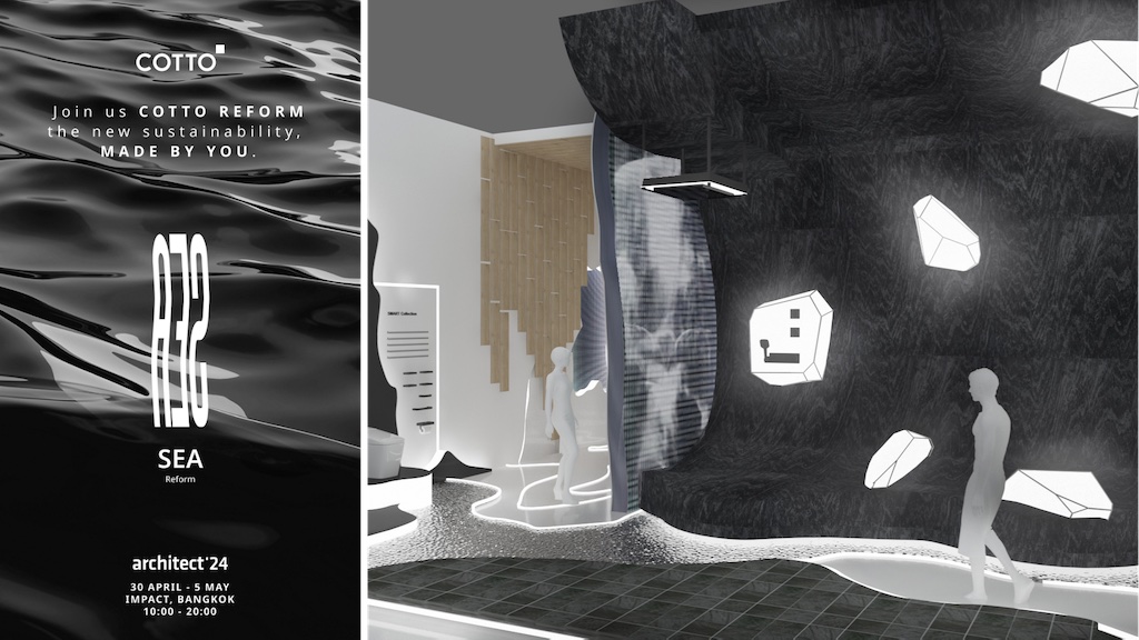 COTTO ภายใต้ SCG Decor จึงผุดไอเดียล้ำ ยกนวัตกรรมวัสดุตกแต่ง จัด Art Installation ในคอนเซปต์ COTTO ‘reform the new sustainability, made by you.’ มาไว้ในงาน “สถาปนิก’67” ซึ่งปีนี้มาในธีม ‘Collective Language: สัมผัสสถาปัตย์’ ที่เป็นการนำเสนอถึงการสื่อสารด้วยภาษาที่ไร้ขอบเขต เพื่อเป็นอีกหนึ่ง Journey ในการสื่อสารสุดท้าทาย ผ่านการนำสินค้า กระเบื้องสุขภัณฑ์ ก๊อกน้ำ อีกทั้งอุปกรณ์ภายในห้องน้ำ ผสานด้วยนวัตกรรมวัสดุที่ถูกคิดมาเพื่อลดปัญหาวิกฤติสิ่งแวดล้อม มาจำลองสถานการณ์ที่ Booth Experience อาทิ การหยิบยก Iceberg Crack สัญลักษณ์การเปลี่ยนแปลงตลอดเวลาของภาวะโลกร้อน เพื่อสะท้อนถึง Climate Change หรือ การเปลี่ยนแปลงของสภาพภูมิอากาศ ที่กระทบกับคนทั่วโลกในระดับมหภาค พร้อมด้วยอีก 4 โซน Reform ได้แก่ Sea Reform, Land Reform, Temperature Reform และ Tides Reform ให้เหล่านักออกแบบ ที่เปรียบเสมือนผู้นำในการสรรค์สร้างที่อยู่อาศัย ได้มาร่วมสัมผัสในงานฯ และเล็งเห็นถึงความสำคัญในการเลือกวัสดุและผลิตภัณฑ์ ซึ่งเป็นจุดเริ่มต้นในการลดการใช้ทรัพยากรที่ทำลายสิ่งแวดล้อมได้มากขึ้น พร้อมร่วมกัน REFORM เพื่อเปลี่ยนโลกให้ดีไปกว่าเดิมได้