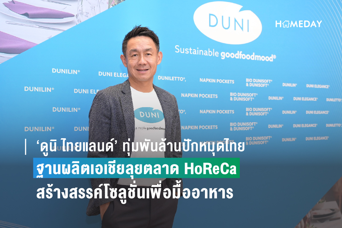 ‘ดูนิ ไทยแลนด์’ แบรนด์กระดาษเช็ดปาก สัญชาติสวีเดน ทุ่ม 1,000 ล้าน ปักหมุด ฐานการผลิตในไทย สร้างสรรค์โซลูชั่นเพื่อมื้ออาหาร ดัน 3 คอนเซ็ปต์ “Go-Joy-Wow” สร้างแบรนด์พรีเมี่ยมที่ทุกโต๊ะอาหารต้องมี พร้อมเปิดตัว DUNI LETTO เร่งหนุนอุตฯ HoReCa บุกตลาดไทย และภูมิภาคเอเชีย พร้อมประกาศเป้าหมายแบรนด์ที่เป็นมิตรต่อสิ่งแวดล้อมที่ยั่งยืน ในวันพุธที่ 17 พฤษภาคม 2566 ณ ห้องเพรสซิเด้นท์ โรงแรมอินเตอร์คอนติเนนทัล