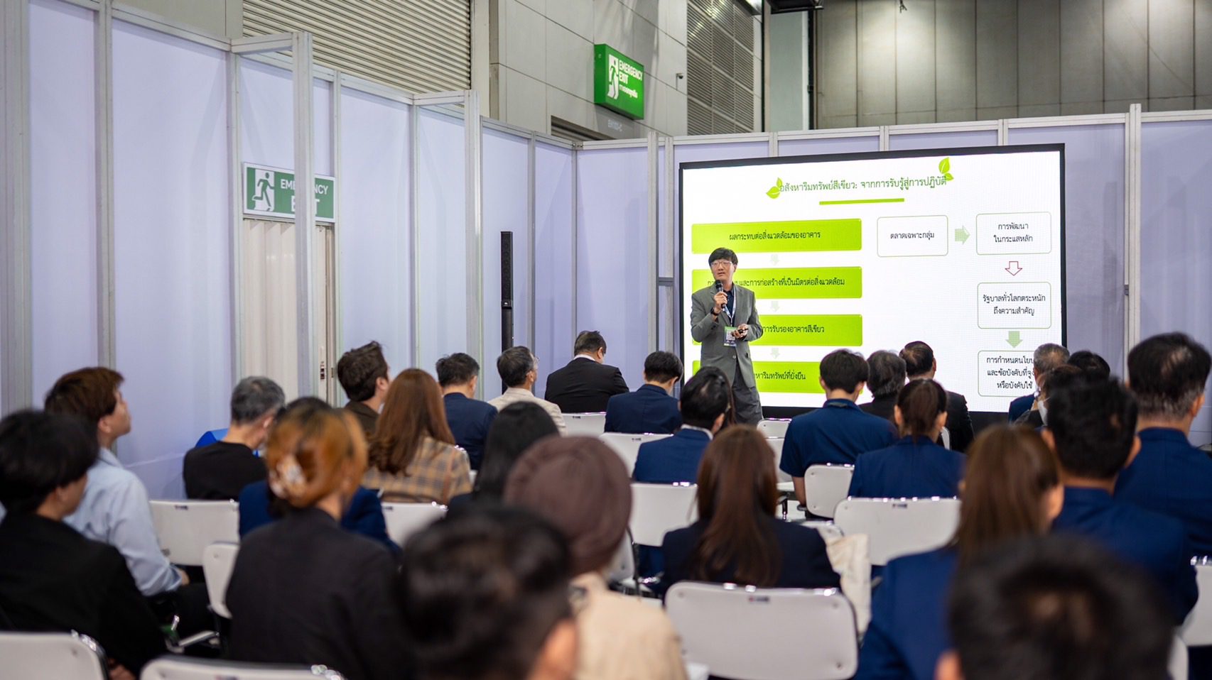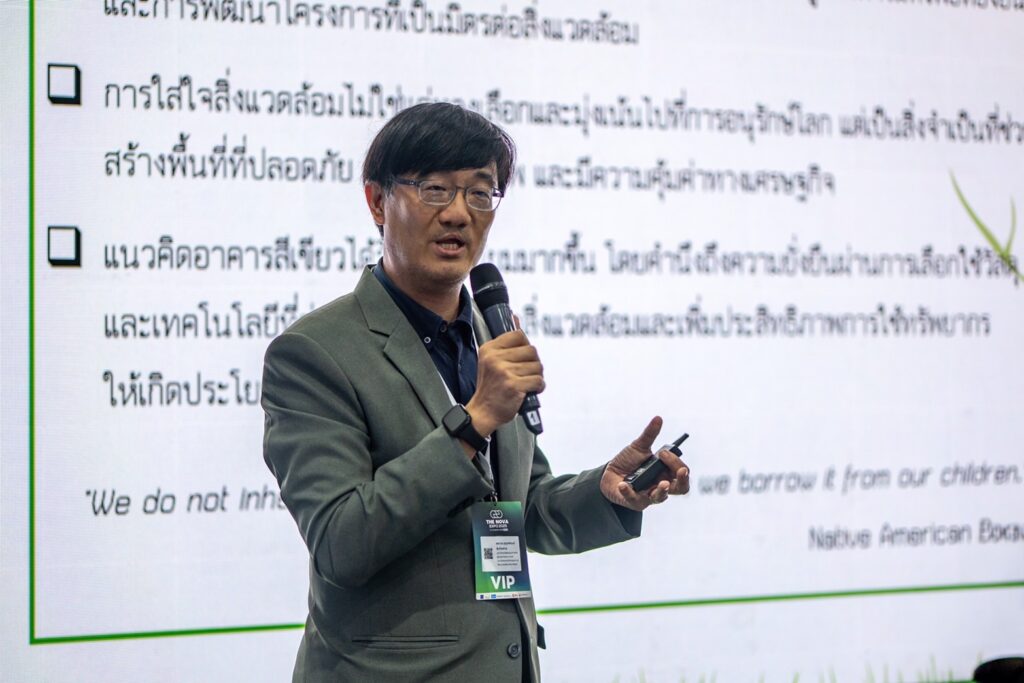 ผศ.ดร.สุกุลพัฒน์ คุ้มไพศาล สาขาวิชานวัตกรรมการพัฒนาอสังหาริมทรัพย์ คณะสถาปัตยกรรมสาสตร์และการผังเมือง มหาวิทยาลัยธรรมศาสตร์ กล่าวในหัวข้อ Real Estate and Urban Development , The Future of Green Real Estate Embracing Innovation for Sustainable Growth โดยชี้ให้เห็นถึง“ความท้าทาย” และ “อนาคต” ของ อสังหาริมทรัพย์สีเขียว (Green Real Estate) ที่เกิดขึ้นว่า การพัฒนาโครงการอสังหาริมทรัพย์ที่เป็นมิตรต่อสิ่งแวดล้อม ไม่ใช่แค่ทางเลือก แต่เป็นสิ่งจำเป็น และสร้างความคุ้มค่าทางธุรกิจ ดังนั้นการเปลี่ยนแปลงสู่อสังหาริมทรัพย์ที่ยั่งยืน และการพัฒนาโครงการที่เป็นมิตรต่อสิ่งแวดล้อม จึงเป็นความท้าทายที่ธุรกิจอสังหาฯกำลังเผชิญ ซึ่งแบ่งเป็น 3 เรื่องหลักคือ ขาดการตระหนักรู้เกี่ยวกับการทำธุรกิจที่เป็นมิตรต่อสิ่งแวดล้อม,ต้นทุนการพัฒนาโครงการที่สูงขึ้น และอุปสรรคด้านกฎระเบียบ