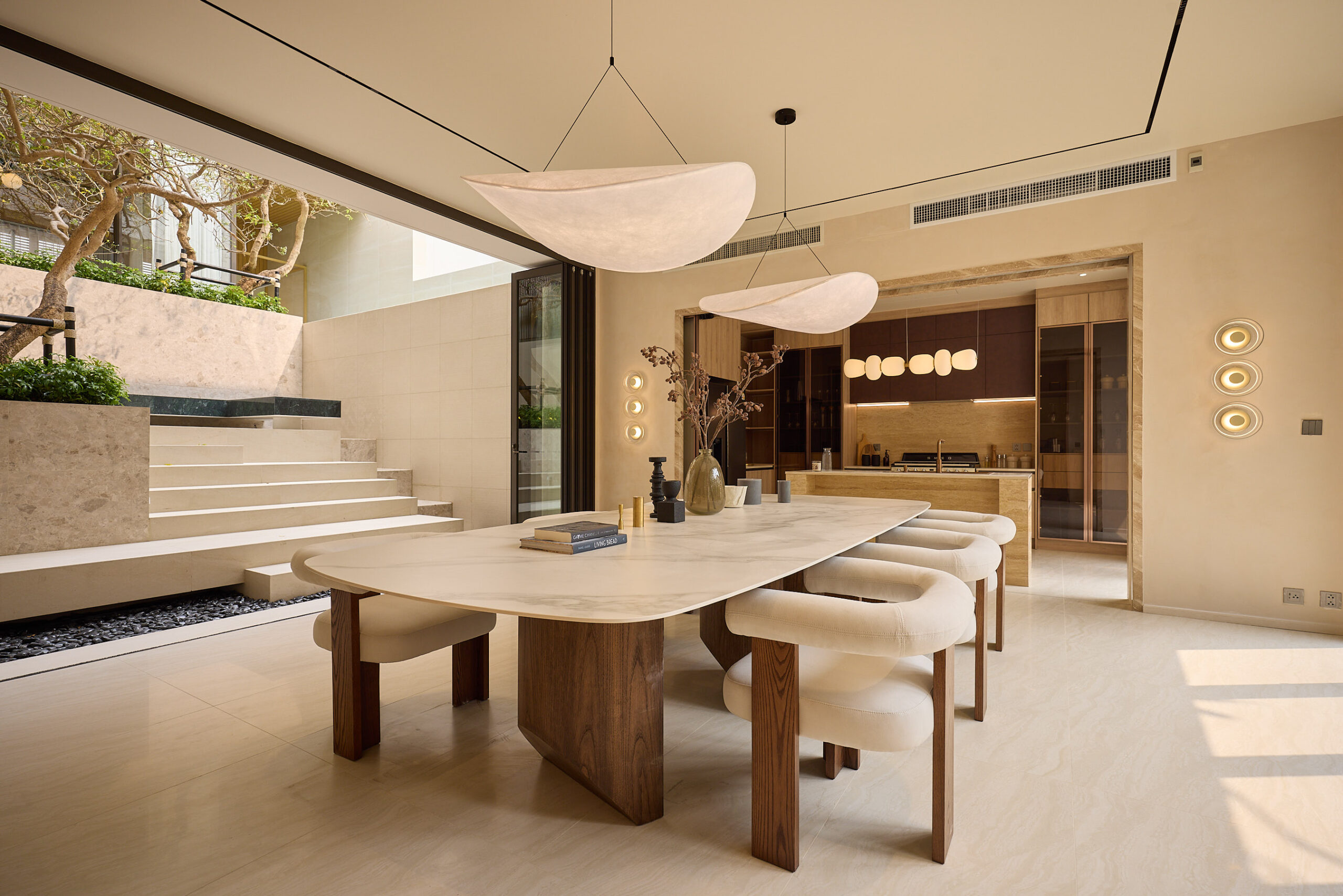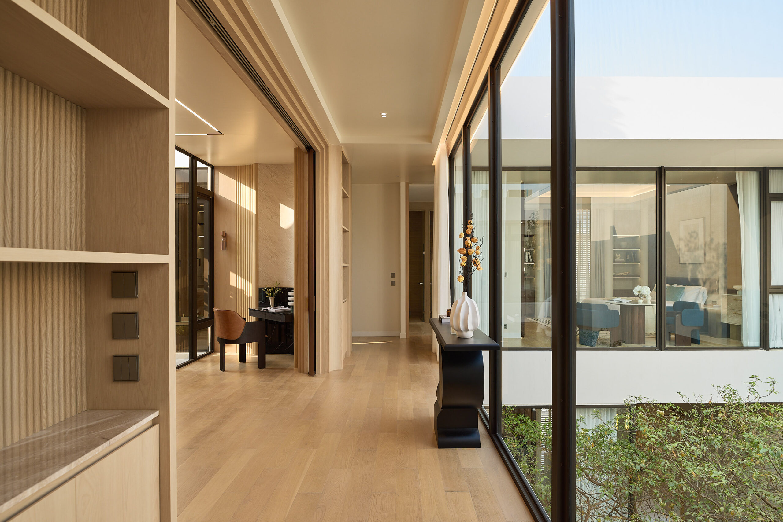 ความโดดเด่นของ ELIVA PRIVATE RESIDENCES อยู่ที่การออกแบบที่พิถีพิถันและแตกต่าง ภายใต้แนวคิด ‘การเชื่อมโยงธรรมชาติและบ้านให้เป็นหนึ่งเดียว’ พร้อมฟังก์ชันและพื้นที่ใช้สอยที่ได้รับการออกแบบ เพื่อตอบโจทย์การใช้ชีวิตของสมาชิกทุกคนในครอบครัว ทั้งโครงการมีเพียง 4 ยูนิตเท่านั้น แต่ละยูนิตสูง 3 ชั้น พื้นที่ใช้สอย 810 ตารางเมตร บนที่ดินขนาด 95–107 ตารางวา ภายในบ้านครบครันด้วยสิ่งอำนวยความสะดวก เช่น ลิฟต์ส่วนตัว และพื้นที่ที่จัดสรรเพื่อความเป็นส่วนตัวสูงสุด ซึ่งสามารถปรับเปลี่ยนฟังก์ชันได้ตามไลฟ์สไตล์และความต้องการ ไม่ว่าจะเป็นห้องทำงาน พื้นที่เวลเนส (Wellness) ที่ช่วยส่งเสริมสุขภาพ หรือมุมกิจกรรมสำหรับครอบครัว ขณะเดียวกัน ยังมีพื้นที่พักผ่อนส่วนกลางภายในบ้าน อาทิ สระว่ายน้ำ สวนบนดาดฟ้า และคอร์ตยาร์ดที่รองรับพื้นที่สีเขียว ที่ช่วยสร้างบรรยากาศผ่อนคลายท่ามกลางธรรมชาติ