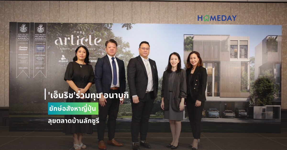 นายอนวัช ฉัตรศิริกุล ประธานกรรมการบริหาร กลุ่มบริษัทเอ็นริช เปิดเผยว่า บริษัทฯ ได้ร่วมทุน (JV) กับอนาบูกิ โคซัน กรุ๊ป (Anabuki Kosan Group) ผู้พัฒนาโครงการอสังหาริมทรัพย์ ติดอันดับ 1 ใน 10 จากประเทศญี่ปุ่น ประเดิมการพัฒนาโครงการบ้านระดับลักซูรี The Article North Ratchaphruek มูลค่ากว่า 2,400 ล้านบาท