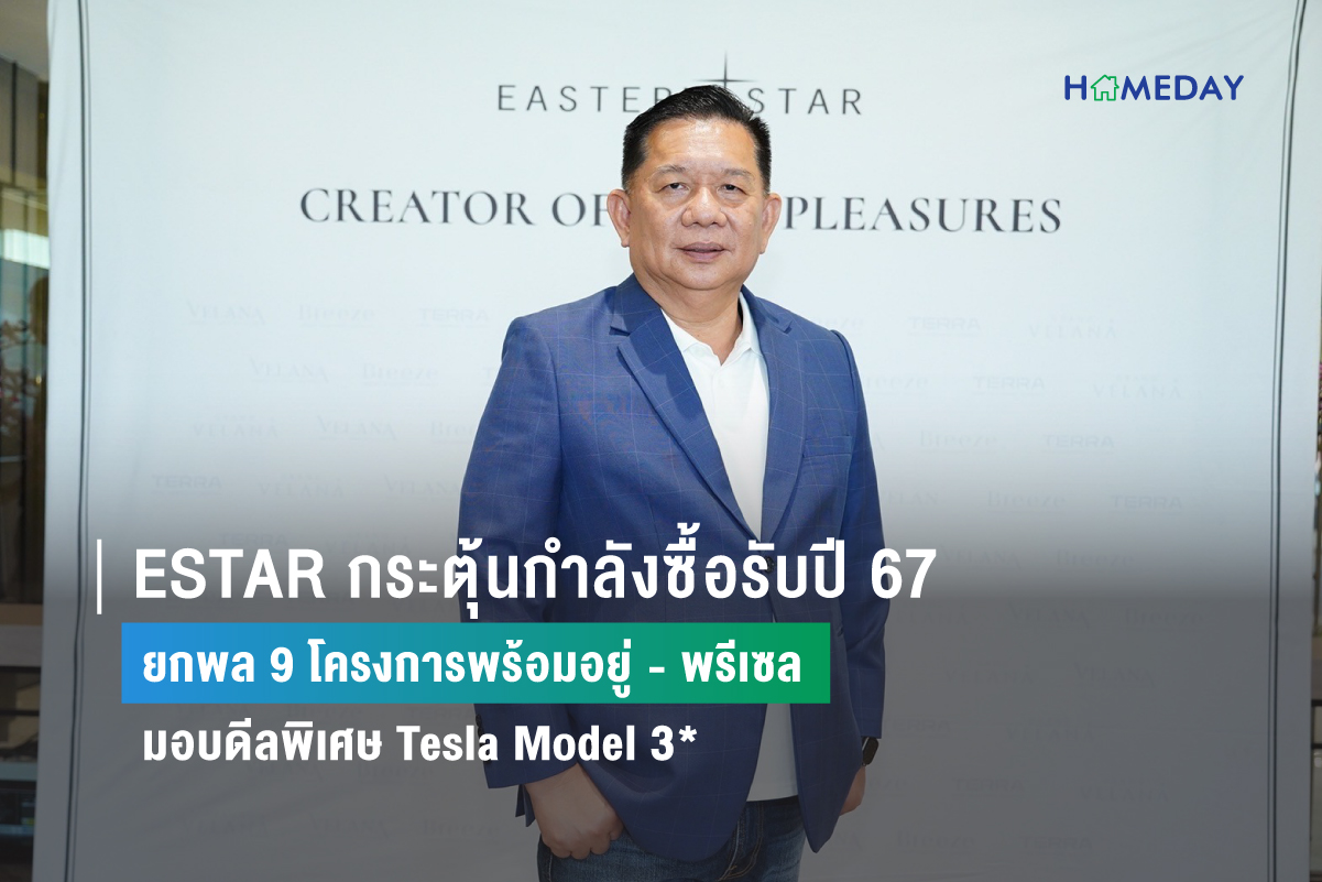 บริษัท อีสเทอร์น สตาร์ เรียล เอสเตท จำกัด (มหาชน) หรือ ESTAR เผยผลงานไตรมาส 1/2567 ดันยอดขายโตทะลุกว่า 510 ล้านบาท เพิ่มขึ้น 75% QoQ พร้อมเปิดแผนปี 67 ลุยพัฒนาบ้านและทาวน์โฮม พรีเมียม กลาง-บน เตรียมเปิดตัว 3 โครงการใหม่ ระยอง-กรุงเทพ มูลค่ารวมกว่า 1,600 ล้านบาท ปักธงรับรู้รายได้สิ้นปีโตเพิ่มกว่า 40