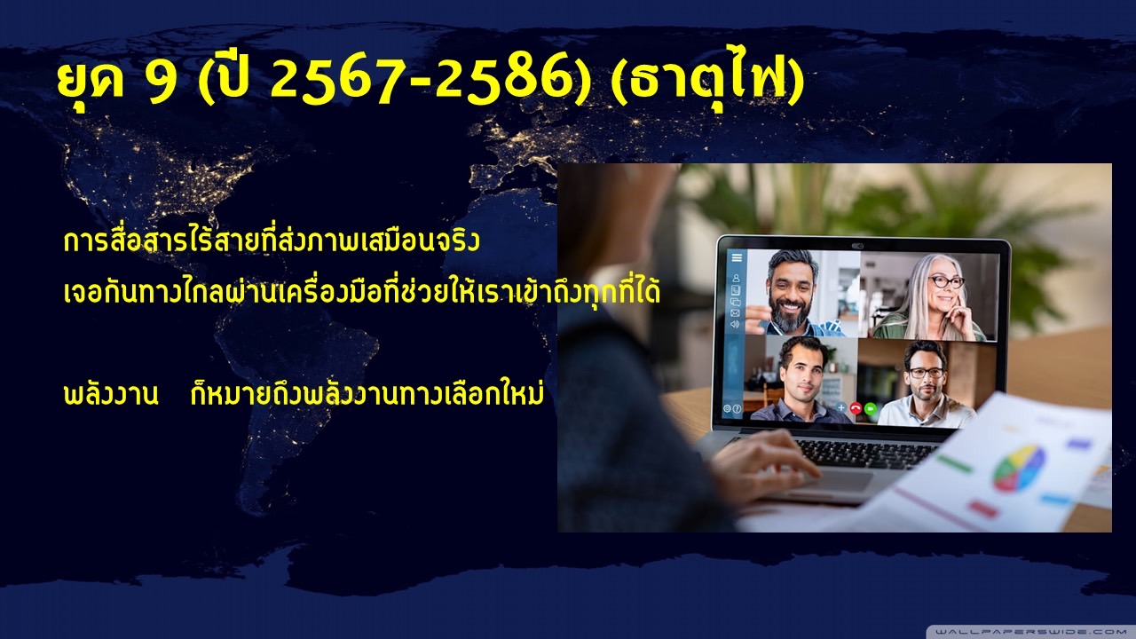 โดยในยุค 9 ที่กำลังจะมาถึงนี้ (ปี 2567-2586) เป็นปีแห่งธาตุไฟ เต็มไปด้วยพลังแห่งความสว่างไสว ความสดใส มีพลัง มีชีวิตชีวา การมองโลกในมุมมองที่มีความสุข ดังนั้น คนที่มีความสุขจนโดดเด่น จะเป็นพลังดึงดูดความสำเร็จ และทำให้คนหันมาสนใจ โดยเฉพาะคนที่ทำธุรกิจค้าขายจะพึ่งพาคนพลังงานธาตุไฟเป็นหลัก