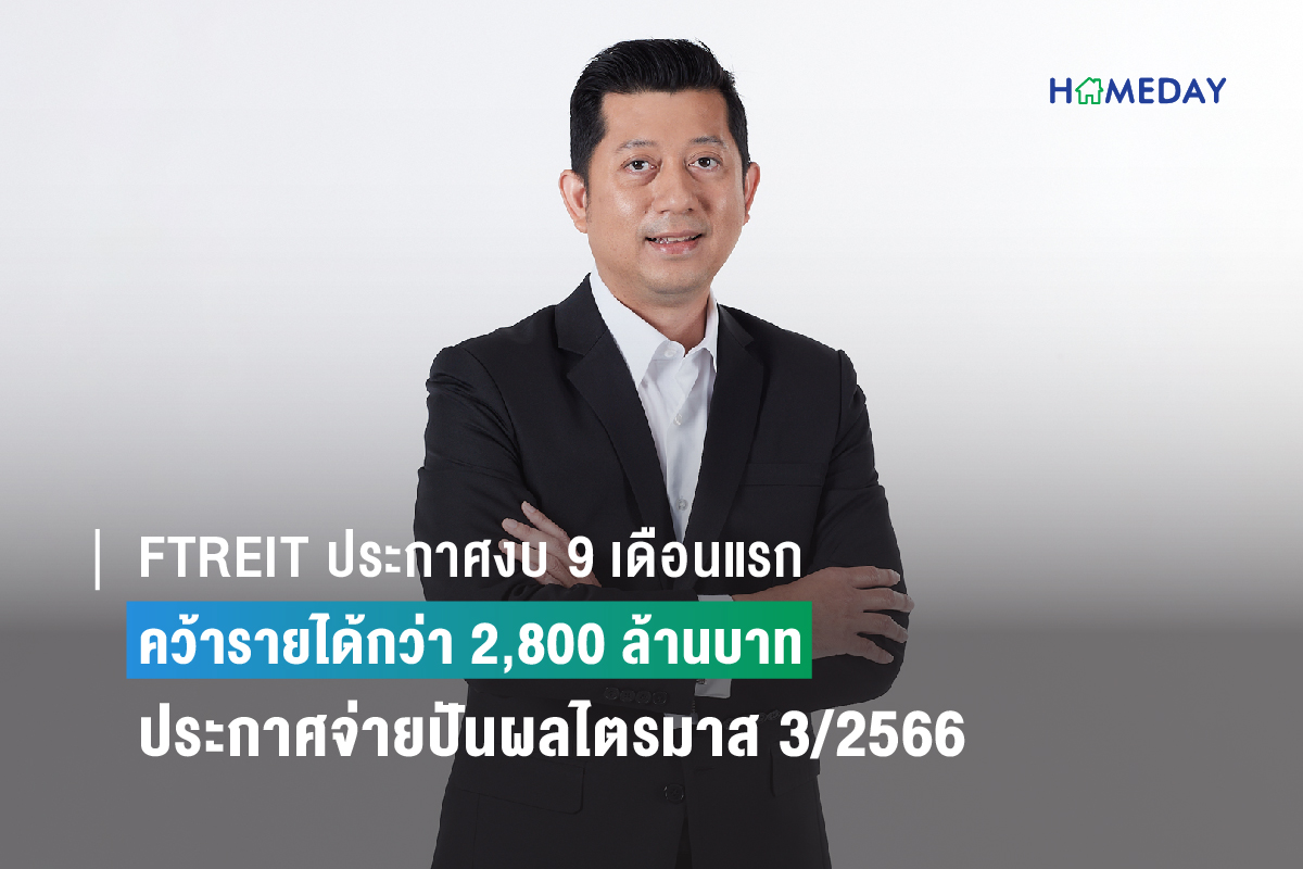 • FTREIT เปิดงบการเงิน 9 เดือนแรกของปีงบประมาณ 2566 (ตุลาคม 2565 – มิถุนายน 2566) รายได้ 2,810.2 ล้านบาท เติบโต 3.1% จากช่วงเดียวกันของปีก่อน กำไรจากการลงทุนสุทธิ 1,887.8 ล้านบาท
