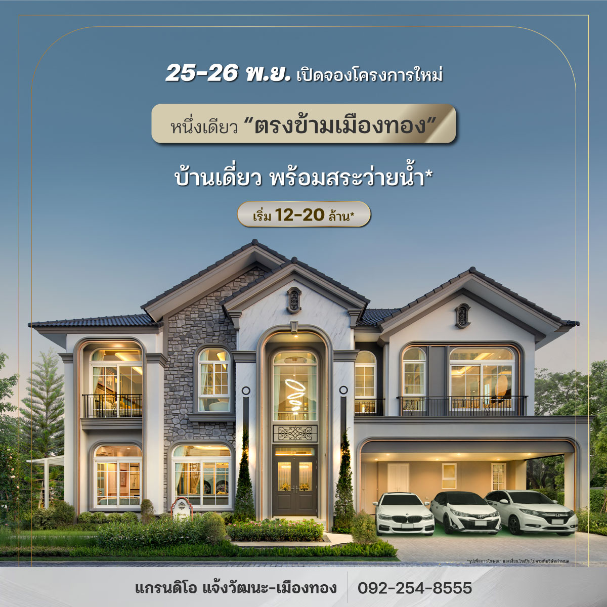 บ้านเดี่ยวสุดหรู พร้อมสระว่ายน้ำ หนึ่งเดียว ตรงข้ามเมืองทองฯ เปิดจองครั้งแรก 25 – 26 พ.ย. นี้