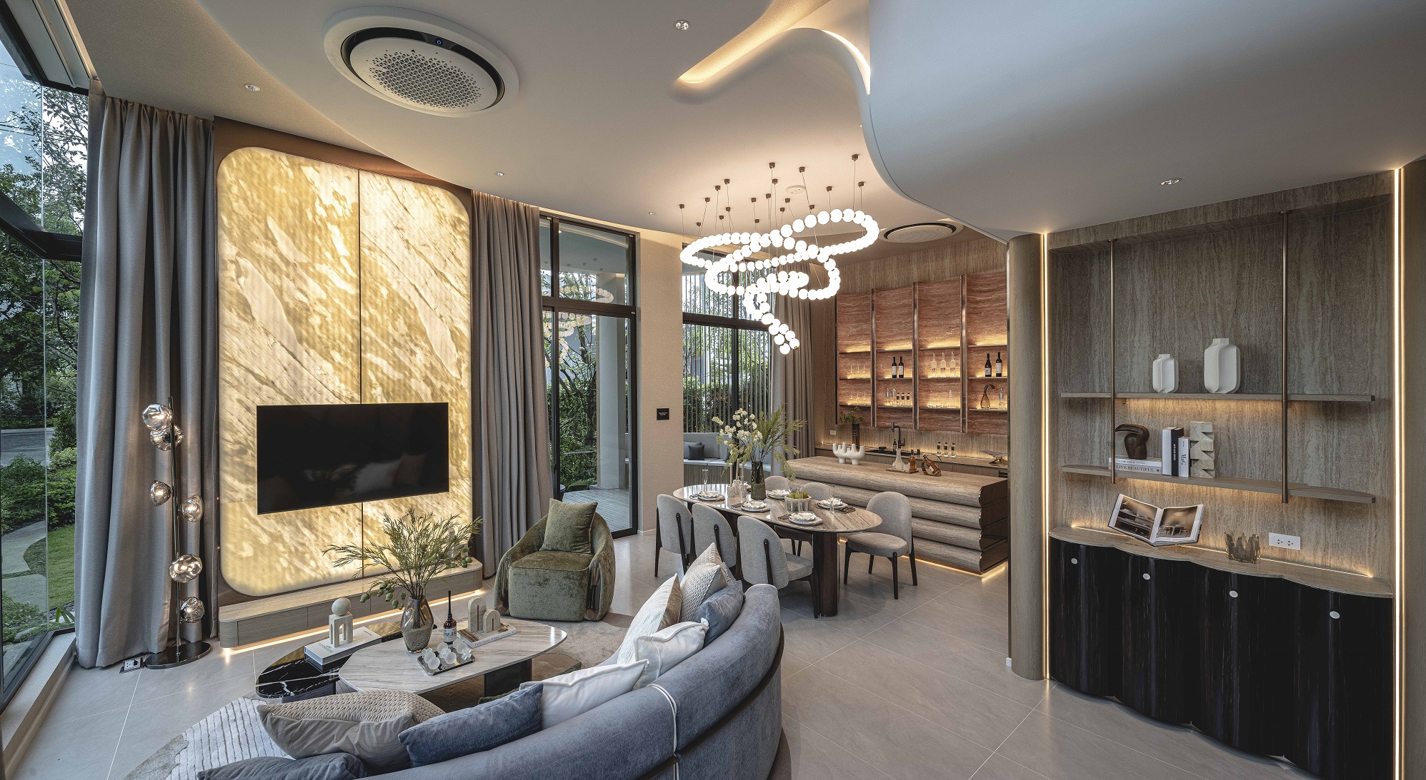 • แบบบ้าน LYRA (ไลร่า) : บ้านเดี่ยว 2 ชั้น พื้นที่ใช้สอย 355 ตารางเมตร ประกอบด้วย 4 ห้องนอน 5 ห้องน้ำ 1 ห้องอเนกประสงค์ 1 ห้องแม่บ้าน 3 ที่จอดรถ มาพร้อมห้องนอนเพนท์เฮ้าส์เล่นระดับ, Grand Ceiling สูงถึง 7.7 เมตร, พื้นที่สำหรับครอบครัว และห้องซัก-ตาก-รีด แบบ Glasshouse