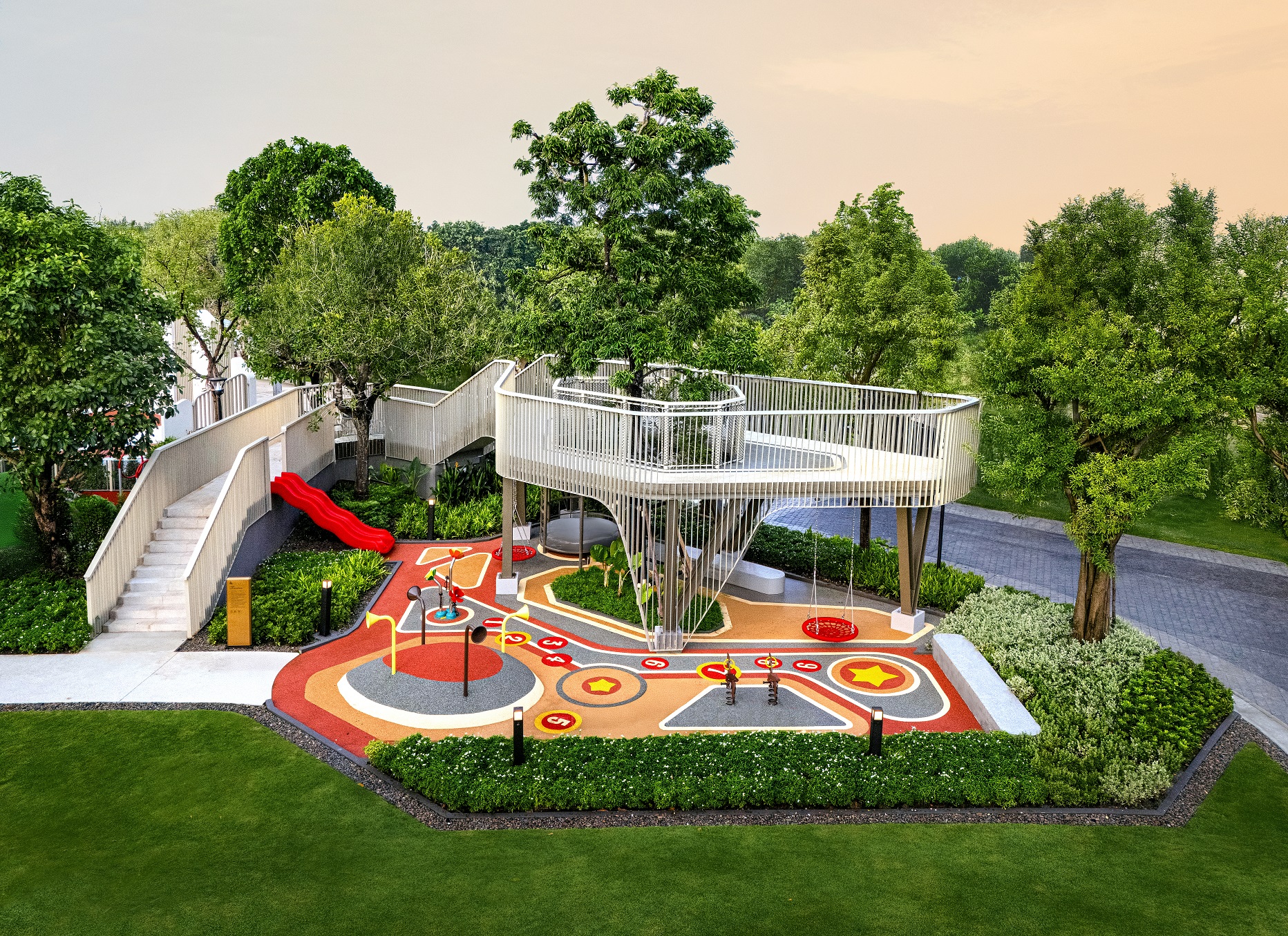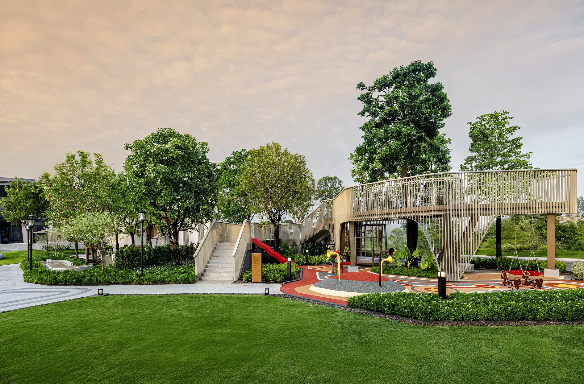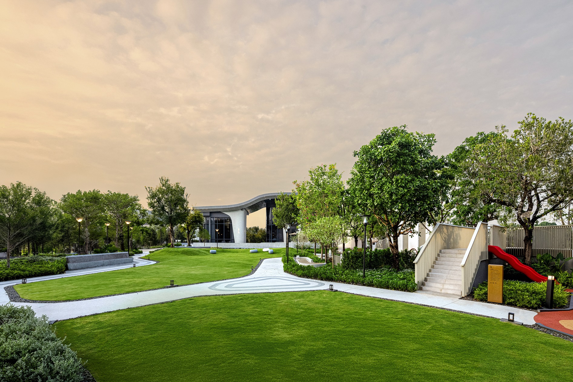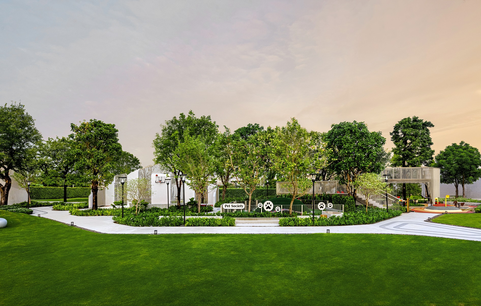 ในส่วนของพื้นที่ส่วนกลาง ทางโครงการฯ ได้ออกแบบภูมิทัศน์อย่างละเอียดในทุกจุด หลอมรวมธรรมชาติเข้ากับสถาปัตยกรรมอย่างประณีต ราวกับบรรจงสร้างให้เหมือนการย่อส่วนองค์ประกอบของธรรมชาติที่เปี่ยมไปด้วยความงดงามและหลากหลายไว้ในโครงการ โดยมีคอนเซ็ปต์ชัดเจนที่ต้องการลบภาพบรรยากาศความเป็นชุมชนหนาแน่น และแทนที่ด้วยความหลากหลายของธรรมชาติและความร่มรื่นเข้ามาไว้ในโครงการ (Miniature Nature) ไม่ว่าจะเป็น การจัดวางพันธุ์พืชที่หลากหลายให้เป็นเนินเหมือนทุ่งหญ้า รวมถึงการเลือกไม้ยืนต้นหลากชนิด เสมือนเป็นป่าย่อมๆ ที่ช่วยสร้างบรรยากาศความร่มรื่นและร่มเย็นให้แก่พื้นที่ได้แบบเป็นธรรมชาติ นอกจากนี้ยังมีสิ่งอำนวยความสะดวกที่รองรับทุกเจเนอเรชั่นและไลฟ์สไตล์ อาทิ สระว่ายน้ำระบบเกลือ, ฟิตเนส, สนามเด็กเล่น, PET SOCIETY พื้นที่สำหรับคนรักสัตว์ และ JOGGING TRACK สำหรับวิ่งออกกำลังกาย, ห้องโยคะ / พิลาทิส, สนามบาสเก็ตบอล พร้อมมุมพักผ่อนกระจายทั่วทั้งสวน ซึ่งนับว่าเป็นโครงการที่สร้างสรรค์ความเป็นศิลปะในการจัดวางองค์ประกอบได้อย่างสวยงาม สามารถอยู่อาศัยได้จริงและมีประสิทธิภาพอย่างสมบูรณ์แบบ การันตีด้วยรางวัล Best Landscape Design Home จากเวที LivingInsider Thailand Developer Awards 2025 อีกทั้งยังมีระบบรักษาความปลอดภัยที่ครอบคลุมทั้งโครงการ ตั้งแต่บริเวณทางเข้า – ออกโครงการ ด้วยประตู Main Gate ที่แยกส่วนสำหรับผู้พักอาศัย และบุคคลภายนอก มาพร้อมกล้องวงจรปิด CCTV ที่ครอบคลุมทั่วโครงการ และเจ้าหน้าที่รักษาความปลอดภัยตลอด 24 ชั่วโมง