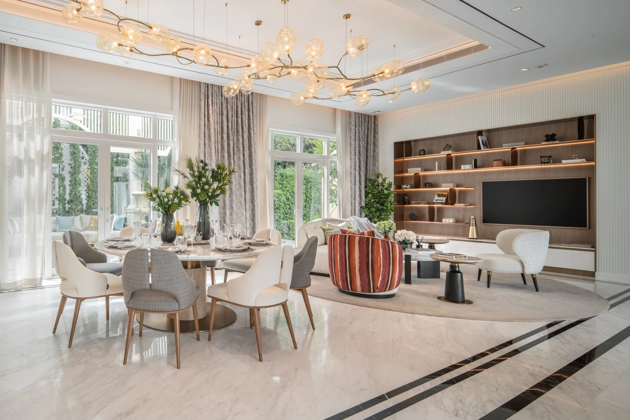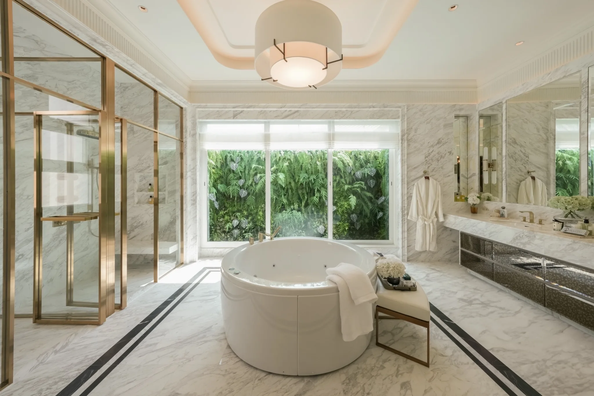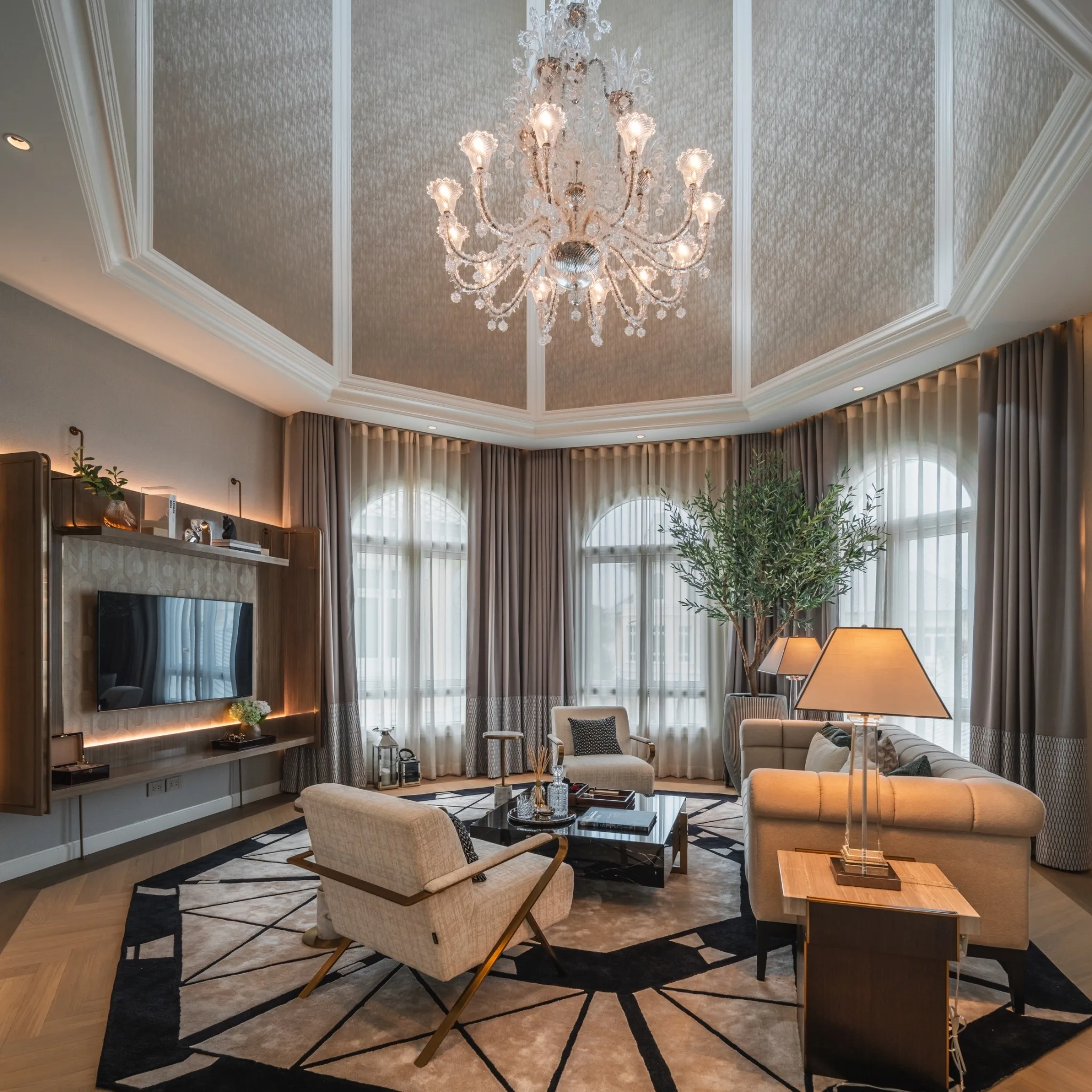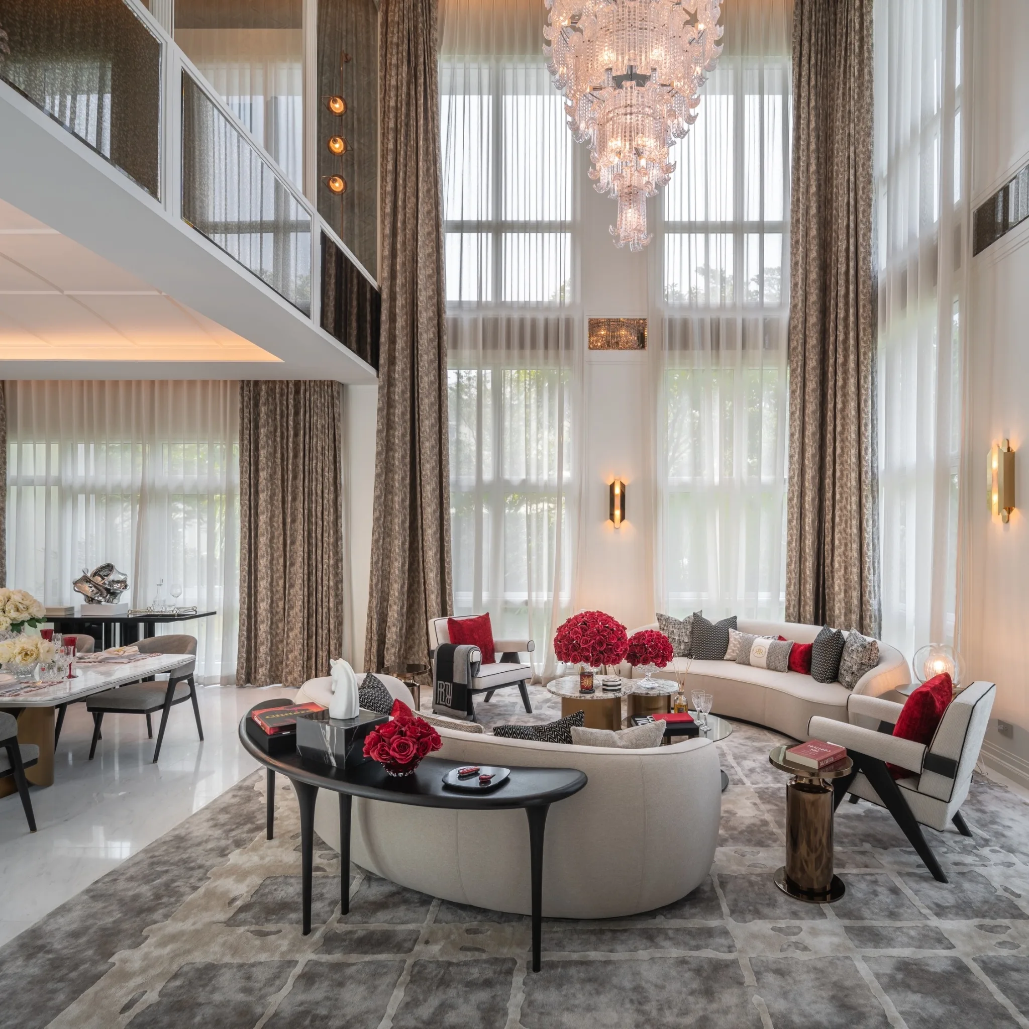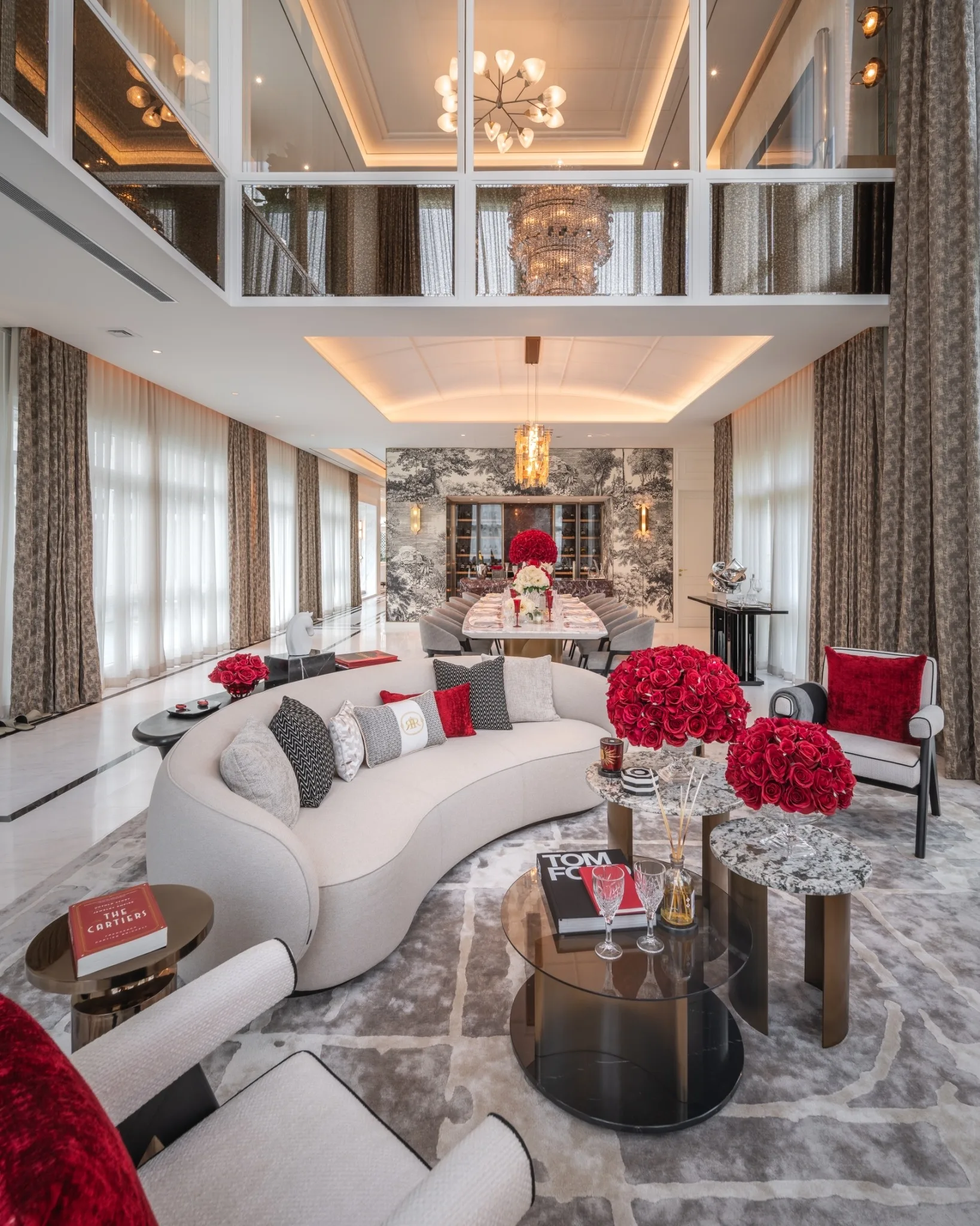 1. แบบบ้าน ROYAL EMPEROR พื้นที่ใช้สอย 1,166 ตารางเมตร ประกอบด้วย 5 ห้องนอน 8 ห้องน้ำ 6+6 ที่จอดรถ พร้อมสระว่ายน้ำส่วนตัว, พื้นที่ Indoor Sunken Area and Glass House และ Supercar Garage