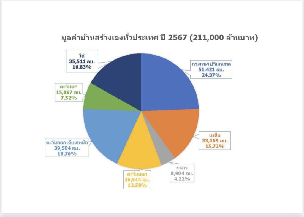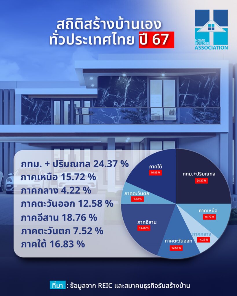 โดยตลาดรับสร้างบ้านแบ่งตามภูมิภาค มีสัดส่วนในปี 2567 ดังนี้