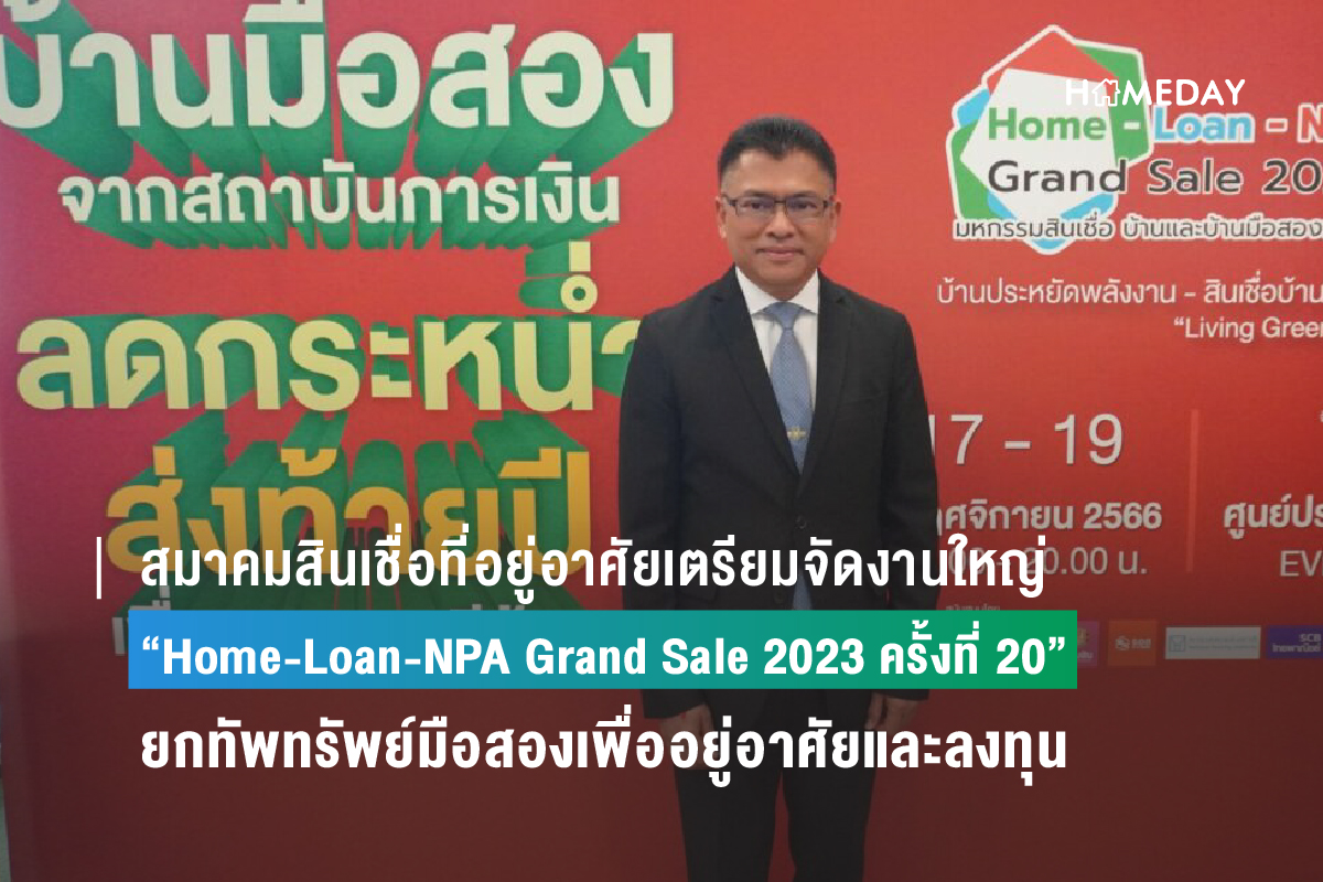 นายอลงกต บุญมาสุข เลขาธิการและประธานกรรมการบริหารสมาคมสินเชื่อที่อยู่อาศัย เปิดเผยว่า สมาคมฯได้จัดกิจกรรมการตลาดเพื่อส่งเสริมการขายทรัพย์สินรอการขาย (Non-Performing Asset: NPA) ของธนาคาร สถาบันการเงิน และบริษัทบริหารสินทรัพย์ ภายใต้ชื่องาน Home-Loan-NPA Grand Sale 2023 มหกรรมสินเชื่อบ้านและบ้านมือสองแห่งปี สำหรับในปีนี้นับเป็นการจัดงานครั้งที่ 20 โดยมีกำหนดจัดงานระหว่างวันที่ 17-19 พฤศจิกายน 2566 ณ Event Hall ศูนย์การประชุมแห่งชาติสิริกิติ์ ถือเป็นงานแสดงทรัพย์สินรอการขายจากธนาคารและสถาบันการเงินต่างๆ รวมทั้งบริษัทบริหารสินทรัพย์ ที่นำมาเสนอขายร่วมกัน ทำให้มีอสังหาริมทรัพย์มือสองที่หลากหลาย บนทำเลที่ดีที่สุด สินเชื่อที่ดีที่สุด และเป็นโอกาสที่ดีที่สุดสำหรับการซื้อเพื่ออยู่อาศัยและการลงทุน