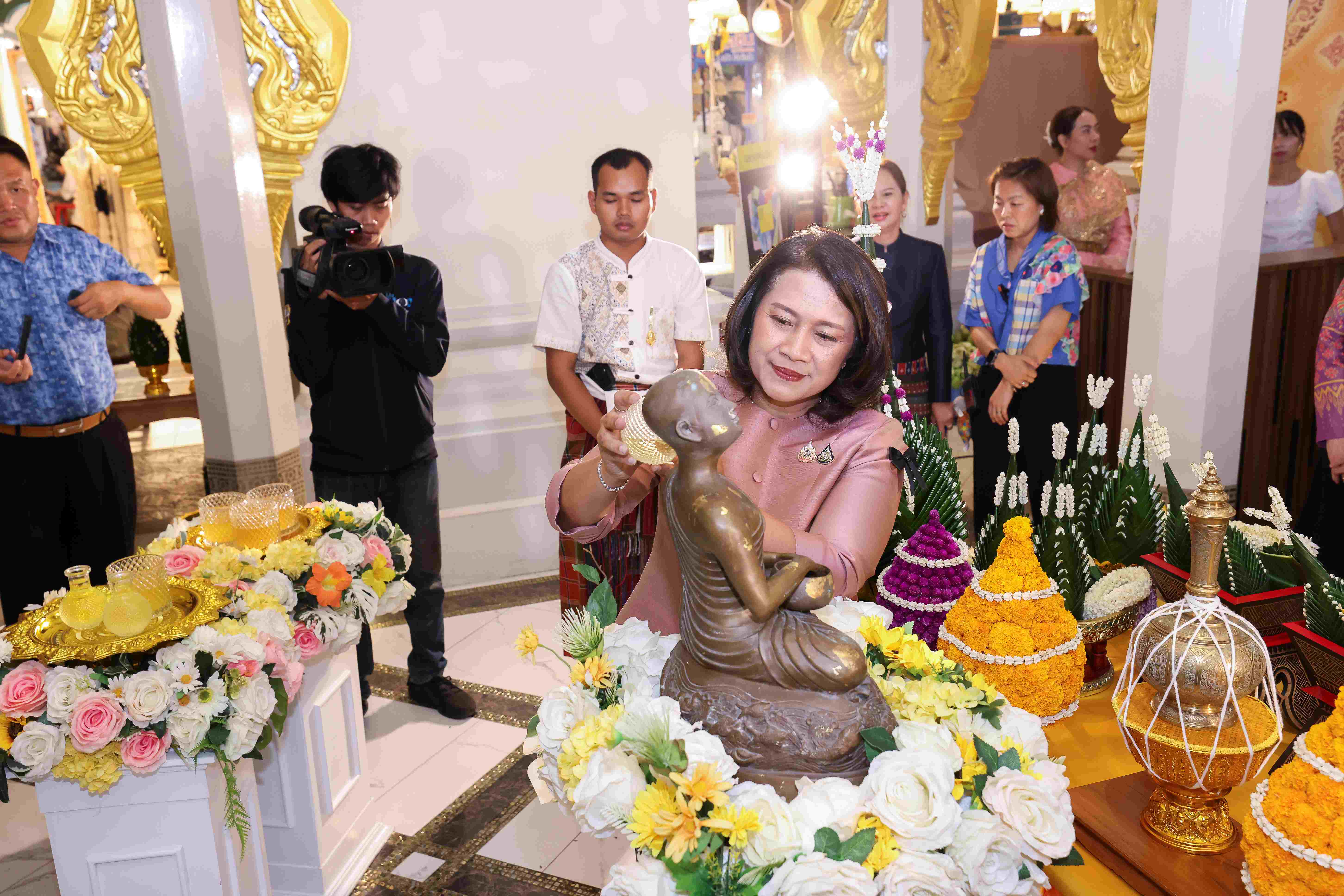 เมืองสุขสยาม ณ ไอคอนสยาม ได้ประกอบพิธีอัญเชิญหลวงพ่อเงินเพื่อถวายน้ำสรงจัดขึ้นในงานบุญเดือน ๕ เป็นจารีตประเพณีดั้งเดิมของโบราณอีสาน อันบ่งชี้ถึงความบรรจงวิจิตรแห่งศรัทธาในพระพุทธศาสนาของท้องถิ่น “หลวงพ่อเงิน” เป็นพระพุทธรูปเงิน ปางมารวิชัย ศิลปะเชียงแสนล้านช้าง พระพุทธรูปศักดิ์สิทธิ์โบราณ คู่บ้านคู่เมือง อายุกว่า 700 ปี ที่ได้รับการยกย่องว่าเป็น “พระชัยหลังช้างแห่งแผ่นดินอีสาน” ในการสถาปนา เมือง