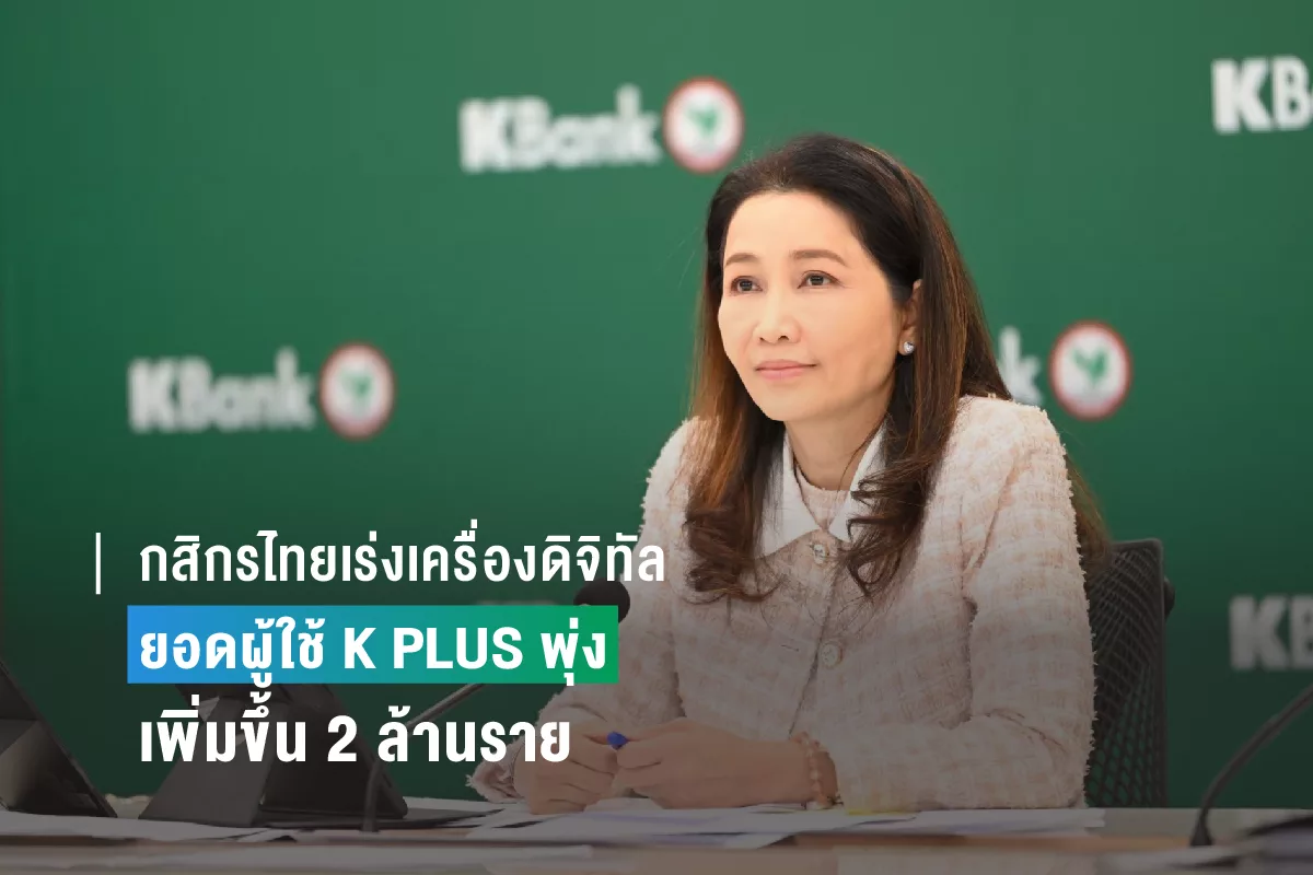 กสิกรไทยเร่งเครื่องดิจิทัล ยอดผู้ใช้ K PLUS พุ่ง เพิ่มขึ้น 2 ล้านราย การทำธุรกรรมผ่าน K PLUS โตก้าวกระโดด 53% ยอดเงินธุรกรรมผ่าน K PLUS แตะ 10 ล้านล้านบาท