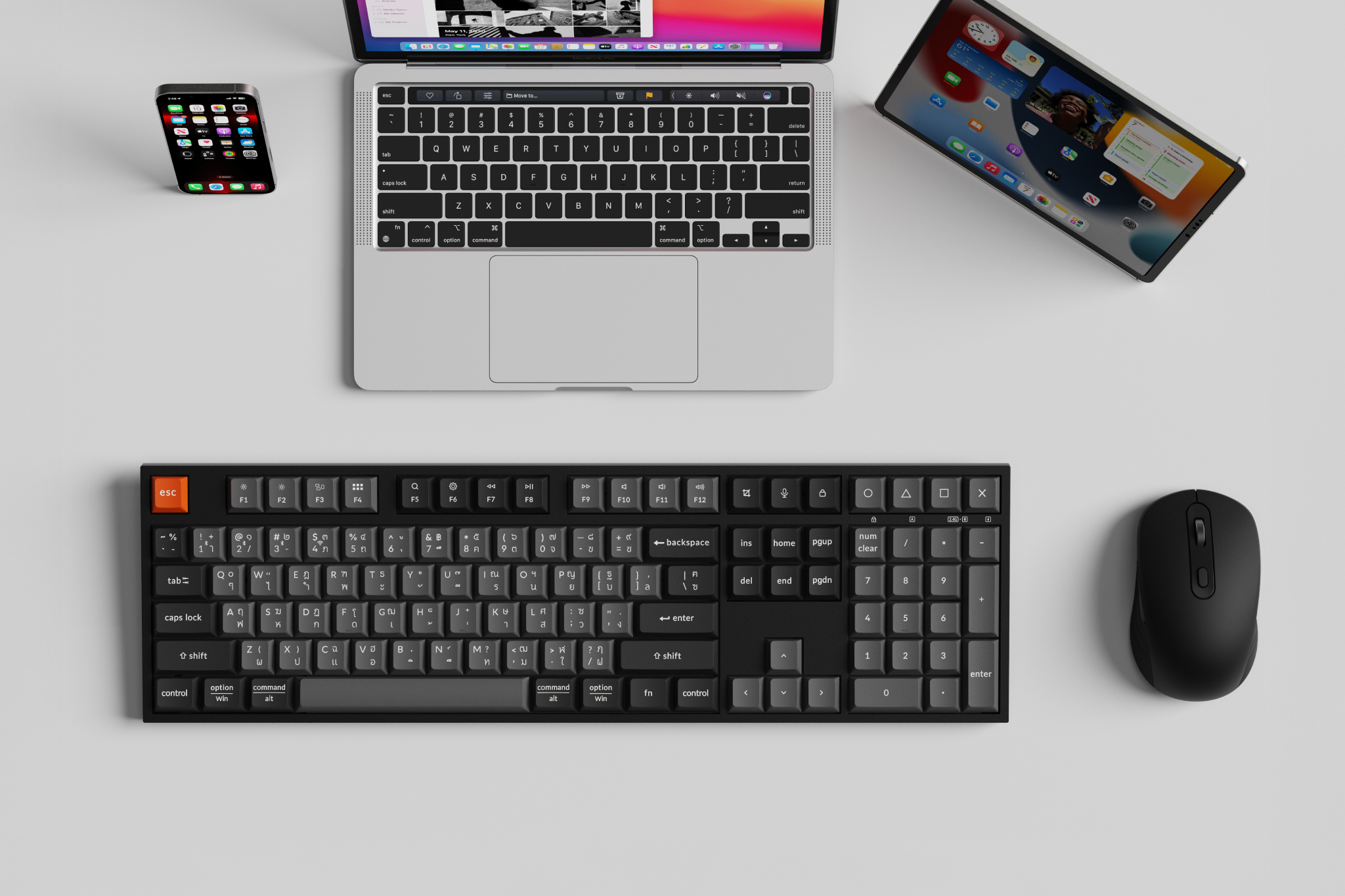 • เชื่อมต่อได้ไร้ขีดจำกัด ครอบคลุมทุกอุปกรณ์และทุกสถานการณ์ด้วย Tri-mode รองรับทั้ง 2.4 GHz Wireless, Bluetooth (สูงสุด 5 อุปกรณ์) และ Wired Mode ผ่าน USB-C ให้คุณเชื่อมต่อรวดเร็ว ตอบสนองไวระดับ 1000 Hz ทั้งคีย์บอร์ดและเมาส์ โดยใช้เพียงดองเกิลเดียวควบคุมอุปกรณ์ทั้งสอง พร้อมแบตเตอรี่ในตัว ใช้งานได้ยาวนาน และสามารถสลับใช้งานกับอุปกรณ์หลากหลายได้อย่างไร้รอยต่อ ไม่ว่าจะเป็นพีซี แท็บเล็ต หรือสมาร์ตโฟน
