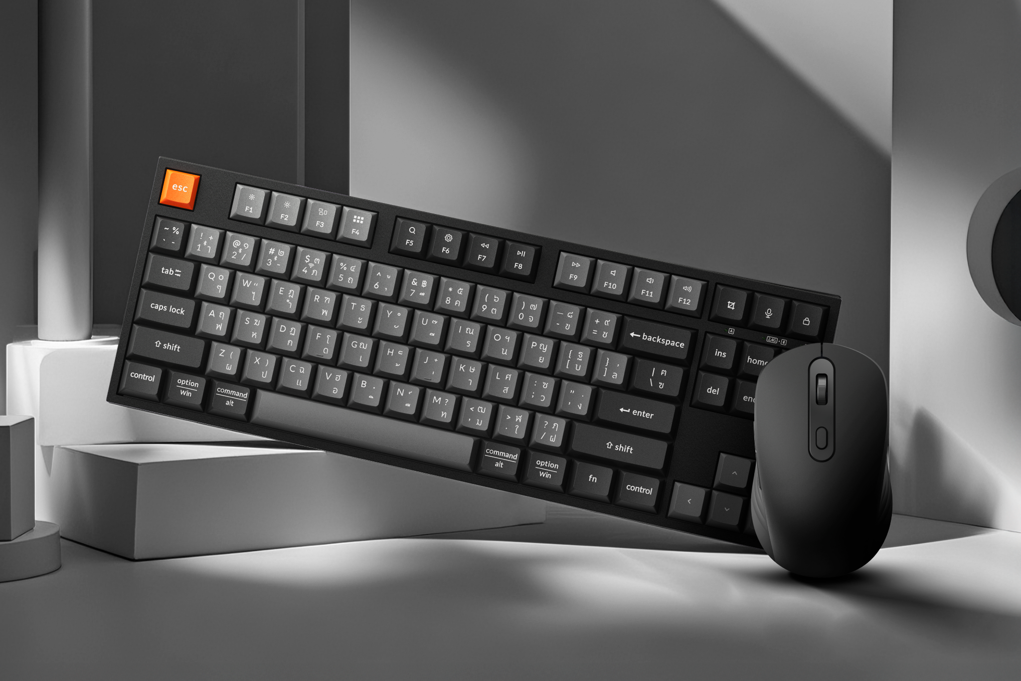คีย์ครอน ไวเลส คอมโบ รุ่น บีสามสาม กับขนาดกะทัดรัด ประหยัดพื้นที่ เหมาะแก่การพกพาเหมาะสำหรับคนที่ไม่ได้ใช้ปุ่มตัวเลข เสียงเบาสัมผัสลื่น แต่ยังทำงานได้อย่างลื่นไหลเต็มประสิทธิภาพ ทั้งหมดรวมอยู่ใน Combo Set ที่พร้อมทำให้คุณโฟกัสกับงานและไอเดียของคุณได้ตลอดทั้งวัน