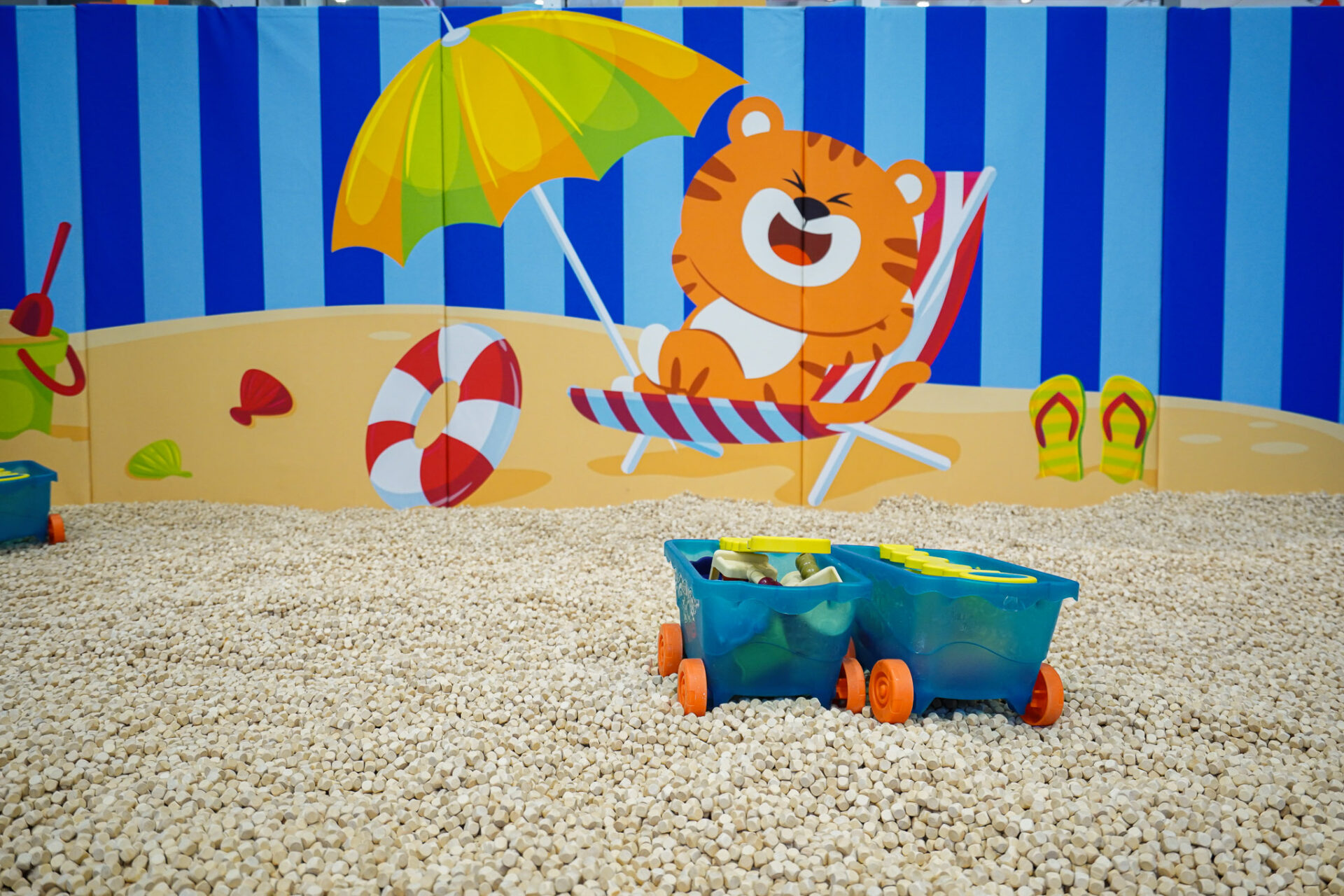 โซนบ่อทรายแสนสนุก ของ Eli: ปล่อยให้จินตนาการและความสร้างสรรค์ของคุณหนู ๆ โลดแล่นออกมาบนบ่อทรายของ Eli พี่ช้างตัวเบิ้ม ที่พวกเขาจะสามารถขุด ปั้น เล่น สร้างปราสาท”ทราย” ของตัวเอง หรือแม้แต่กลิ้งไปมาบนพื้นทรายได้แม้ยามฝนจะตกหรือแดดออกก็ตาม!