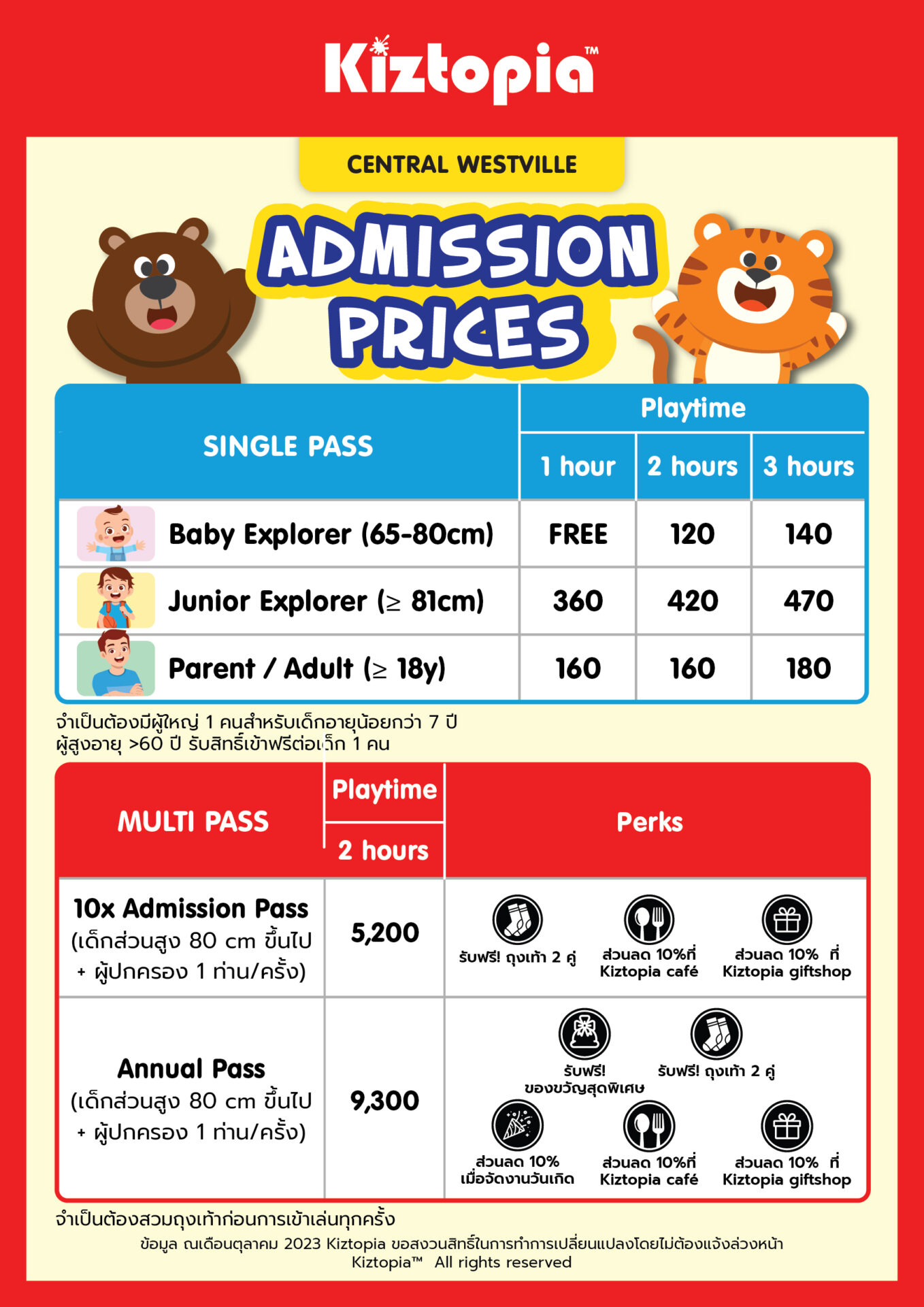 • แพ็คเกจบัตรผ่านประตูมีทั้งแบบ Single, 10x Pass และ Annual Pass – จัดจำหน่ายบนเว็บไซต์ Kiztopia TH พร้อมส่วนลดอีก 15% และของขวัญพิเศษฉลองเปิดตัวแฟลกชิปสโตร์แห่งแรก