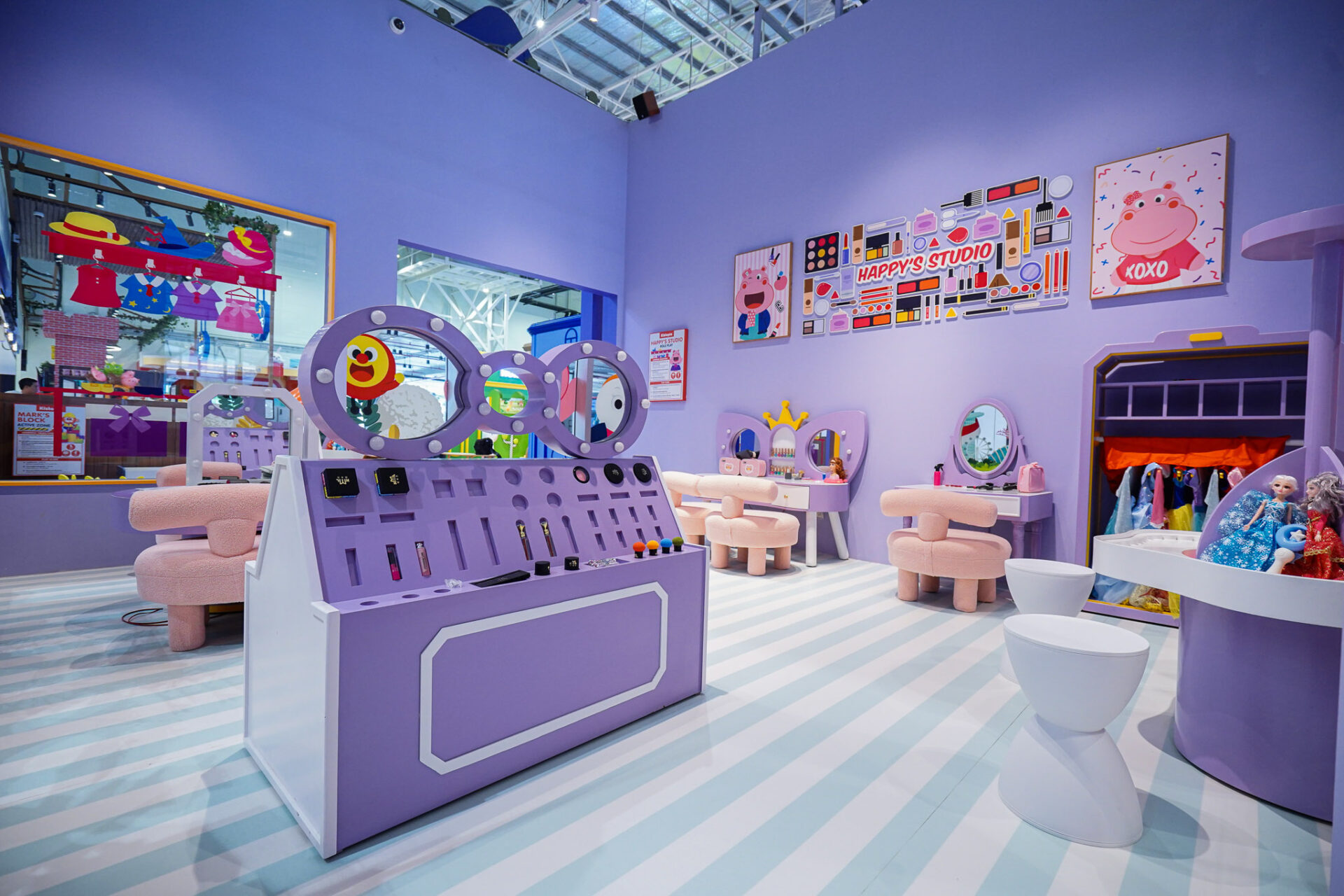 Happy’s Studio: สำหรับคุณหนู ๆ ที่รักสวยรักงามและชื่นชอบการแต่งหน้าทำผม บอกเลยว่าไม่ควรพลาดกับ Happy’s Studio! เพราะในโซนนี้ทุกคนจะได้เล่นแต่งตัวกับเสื้อผ้าสุดน่ารักหลากหลายสไตล์ กับ Happy ฮิปโปสาวนักเต้นบัลเลต์ ให้เด็ก ๆ สำรวจความงามจากภายในและสร้างความมั่นใจในตัวเองไปพร้อมกัน