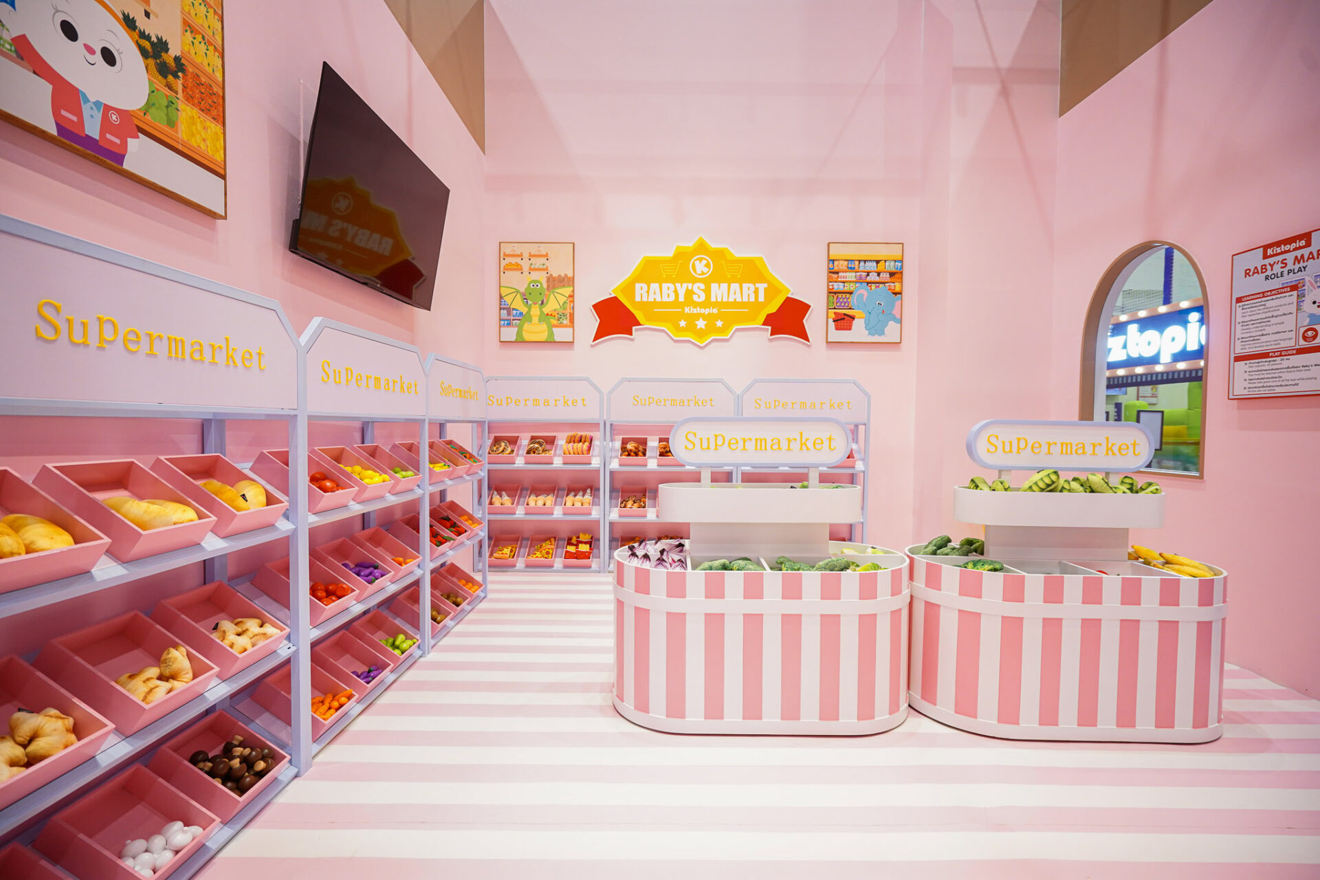 Raby’s Mart: ซูเปอร์มาร์เก็ตที่จำลองสำหรับเด็ก ให้คุณหนู ๆ ได้ปลดปล่อยจินตนาการไปกับการเล่นบทบาทสมมติ ที่จะช่วยพัฒนาทักษะทางสังคมและการเรียนรู้คณิตศาสตร์ขั้นพื้นฐานไปกับคุณครูกระต่ายสาว Raby! เด็ก ๆ สามารถเล่นเป็นนักช้อปตัวจิ๋วที่กำลังเดินเล่นซื้อของในซูเปอร์มาเก็ตที่มีสินค้าครบครัน หรือจะเป็นพนักงานแคชเชียร์ที่เคาน์เตอร์ชำระเงินก็ได้เช่นกัน!