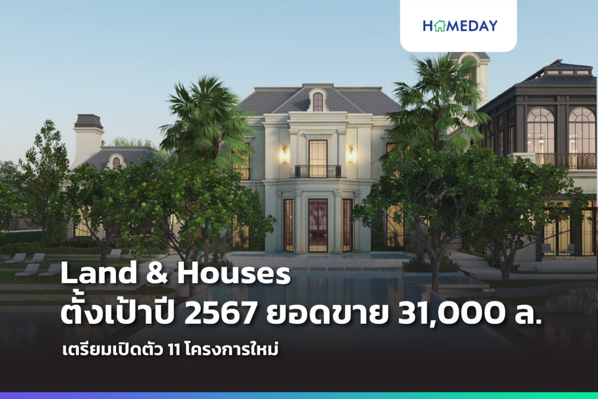 บริษัท แลนด์ แอนด์ เฮ้าส์ จำกัด (มหาชน) ตั้งเป้าหมายแผนการดำเนินงาน ในปี 2567 โดยตั้งเป้าหมายยอดขาย (Bookings) 31,000 ล้านบาท และเป้าหมายรับรู้รายได้จากยอดโอนกรรมสิทธิ์ 28,000 ล้านบาท ส่วนรายได้จากอสังหาริมทรัพย์เพื่อเช่า ตั้งเป้าหมายไว้ที่ 8,540 ล้านบาท
