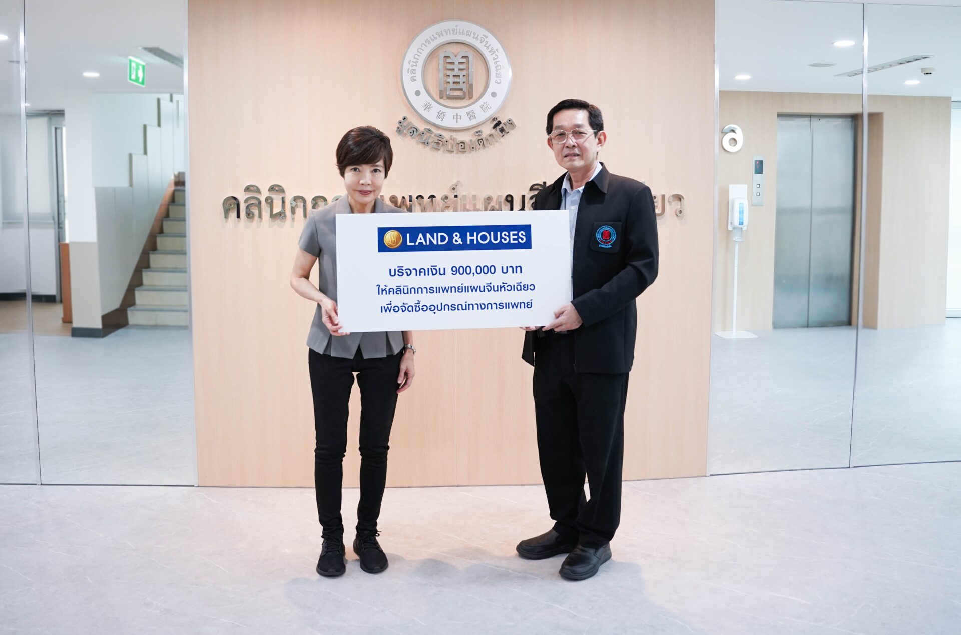 คุณศุภรัชฎ์ วีระกุล (ซ้าย) ผู้จัดการฝ่ายอาวุโส ฝ่ายสื่อสารองค์กร บริษัท แลนด์ แอนด์ เฮ้าส์ จำกัด (มหาชน) เป็นผู้แทนบริษัทฯ มอบเงินบริจาค 900,000 บาท (เก้าแสนบาทถ้วน) ให้แพทย์จีนสมชาย จิรพินิจวงศ์ (ขวา) รองผู้อำนวยการด้านการแพทย์ คลินิกการประกอบโรคศิลปะ สาขาการแพทย์แผนจีนหัวเฉียว เพื่อสนับสนุนการซื้ออุปกรณ์ทางการแพทย์ ได้แก่ เตียงคนไข้ประเภทไฟฟ้า จำนวน 21 เตียง ให้ผู้ป่วยได้ใช้ทั้ง 3 สาขา ได้แก่ สำนักงานใหญ่ กทม., สาขาศรีราชา และสาขาโคราช แบ่งเป็นเตียงไฟฟ้าทำหัตถการฝังเข็ม 16 เตียง และเตียงไฟฟ้านวดทุยหนารักษาจัดกระดูก 5 เตียง เตียงคนไข้ไฟฟ้านี้สามารถปรับระดับความสูงต่ำได้ ช่วยให้ผู้ป่วยได้รับความสบายขณะนอนฝังเข็ม สะดวกต่อการขึ้นลงเตียงโดยเฉพาะผู้สูงอายุ และสะดวกต่อแพทย์ผู้รักษาในการปรับระดับความสูงขณะรักษาผู้ป่วย