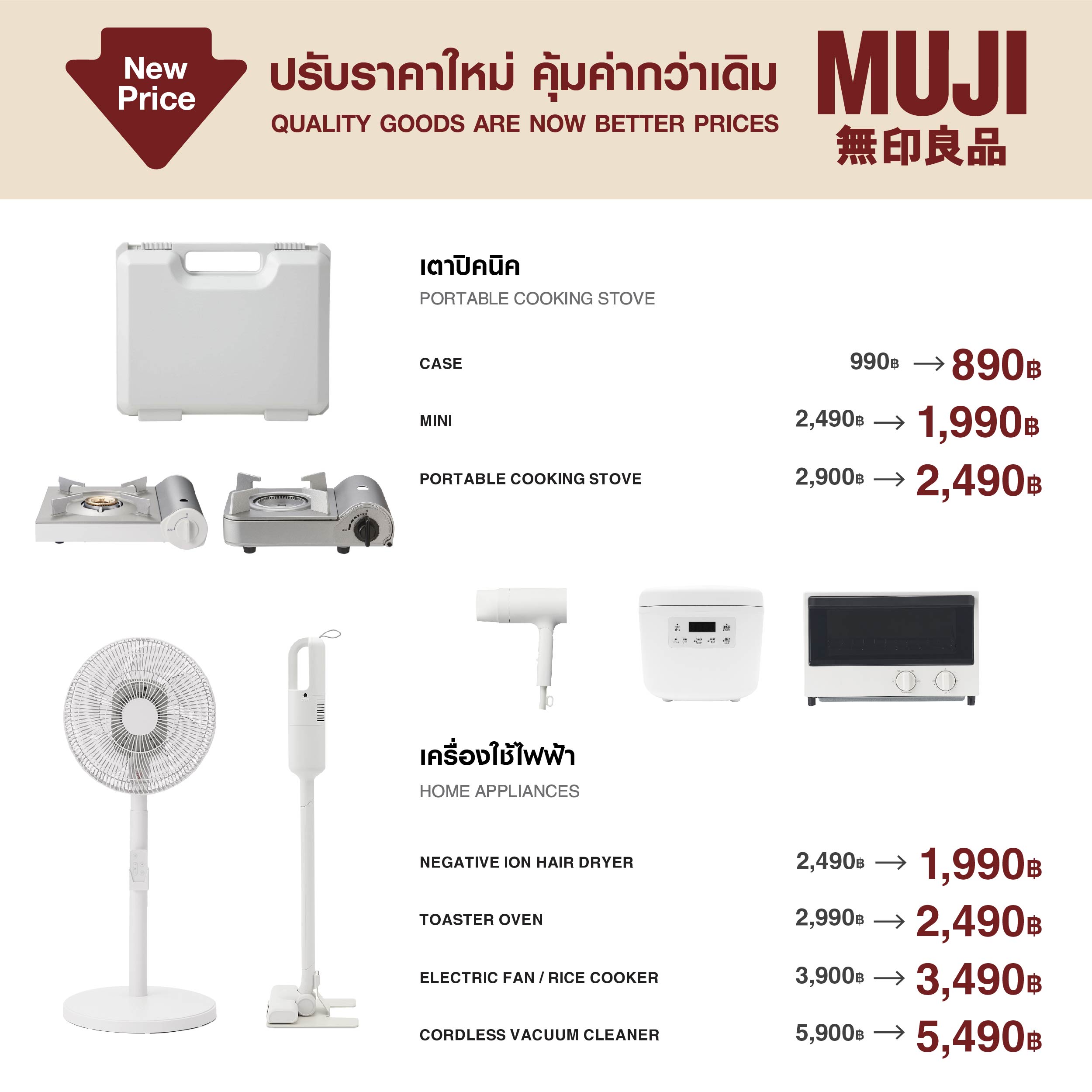 พบกับสินค้า MUJI คุณภาพดี ในราคาที่คุ้มค่า ครอบคลุมทุกหมวดหมู่ผลิตภัณฑ์ที่ใช้ได้ในชีวิตประจำวันสำหรับทุกคน และไอเทมยอดฮิตที่ห้ามพลาดได้แล้ววันนี้ที่ร้าน MUJI ทุกสาขาทั่วประเทศ และช่องทางการจำหน่ายออนไลน์อย่างเป็นทางการของมูจิบน Central Online และ Lazada ติดตามรายละเอียดเพิ่มเติม Facebook: MUJI Thailand และ Instagram: MUJI_Thailand / LINE Official Account : @MUJIThailand