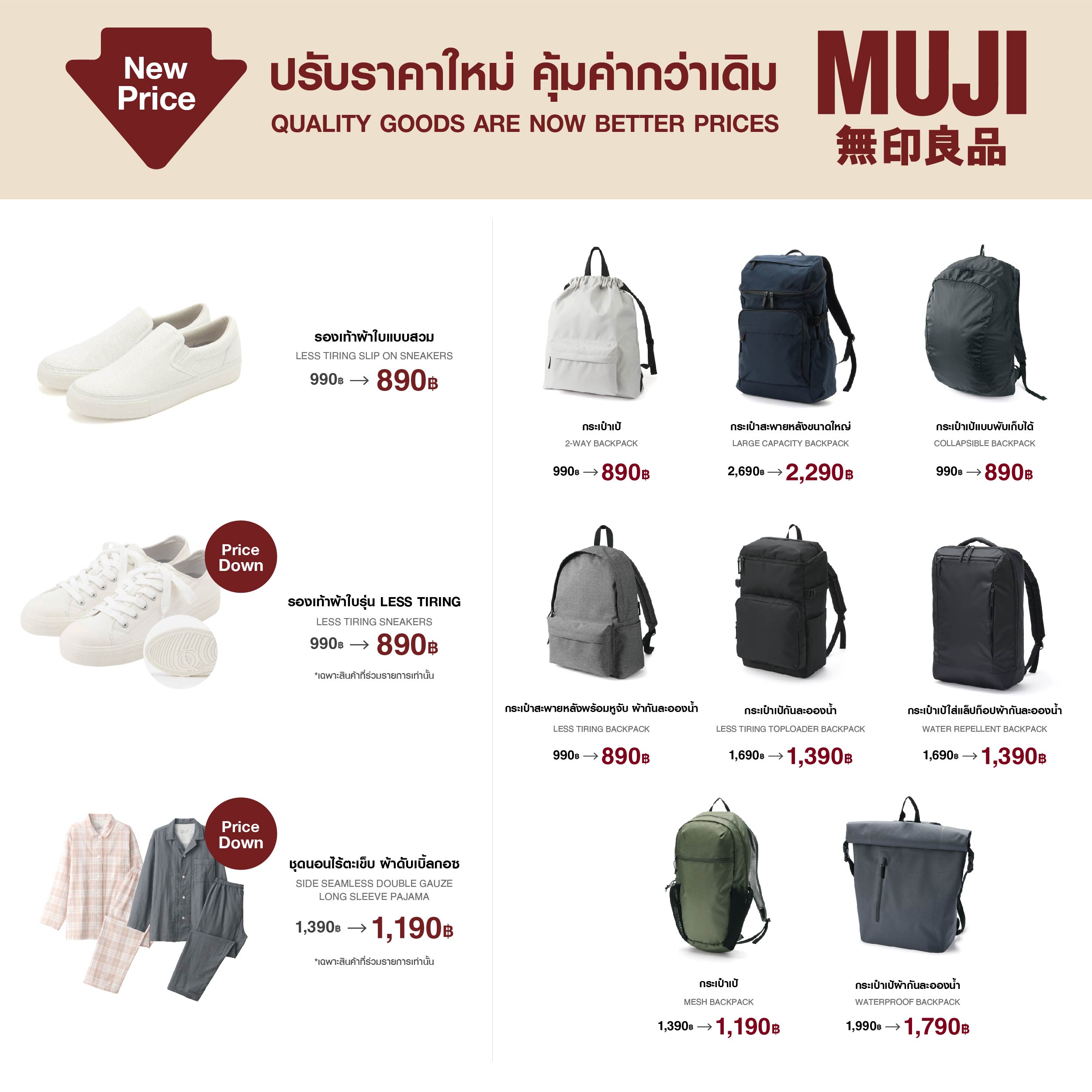 มูจิ ประเทศไทย (MUJI) ประกาศปรับราคาสินค้าคุณภาพอีกครั้ง เพิ่มเติมกว่า 126รายการ ครอบคลุมทุกหมวดหมู่ตั้งแต่วันที่ 10 พฤษภาคมเป็นต้นไป เพื่อให้ตอบโจทย์อินไซท์ความต้องการของผู้บริโภคทุกกลุ่มอย่างรอบด้าน ทั้งฟังก์ชั่นในการใช้งาน และพฤติกรรมการจับจ่ายใช้สอย ตามกลยุทธ์ “Always good Value, Always good price” มุ่งนำเสนอสินค้าคุณภาพ ในราคาที่คุ้มค่า พาแบรนด์มูจิให้ใกล้ชิดกับคนไทยมากขึ้น ตามเป้าหมายการเป็น แบรนด์สินค้าไลฟ์สไตล์สามัญประจำบ้านในใจคนไทยทั่วทุกภูมิภาค โดยที่ผ่านมาบริษัทฯ ได้เดินหน้ากลยุทธ์ด้านราคาอย่างต่อเนื่องตั้งแต่ปี 2562 ควบคู่กับการขยายสาขา ให้ครอบคลุมทั่วประเทศโดยเฉพาะในต่างจังหวัด และมุ่งพัฒนาสินค้าใหม่ๆ ให้เหมาะสมกับอินไซท์ด้านพฤติกรรม และความต้องการของลูกค้าในแต่ละพื้นที่ โดยตลอดระยะเวลา 6 ปีที่ผ่านมา มูจิมีการปรับราคาสินค้าในทุกๆ หมวดหมู่อย่างต่อเนื่อง ส่งผลให้บริษัทมีฐานลูกค้าในประเทศไทย ที่ซื้อสินค้า MUJI ซ้ำเป็นประจำ และเพิ่มฐานลูกค้ากลุ่มใหม่ทั้งในกรุงเทพฯ และต่างจังหวัด ทำให้ยอดขายมีการเติบโตสูงขึ้นเป็นอย่างมาก