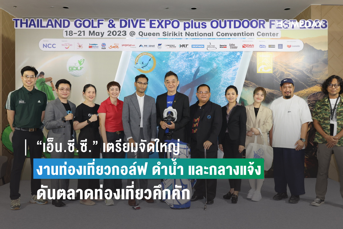 เอ็น.ซี.ซี. เตรียมจัดมหากรรมการท่องเที่ยวเชิงไลฟ์สไตล์และกิจกรรมกลางแจ้ง “Thailand Golf & Dive Expo plus Outdoor Fest 2023” ดึงสินค้า และบริการท่องเที่ยวจากทั่วโลก กว่า 1,000 แบรนด์ 450 บูธ พร้อมจัดโปรโมชันพิเศษ หวังบูมธุรกิจท่องเที่ยวไทย ปักหมุดจัดวันที่ 18-21 พฤษภาคมนี้ ณ ฮอลล์ 6-7 ชั้น LG ศูนย์การประชุมแห่งชาติสิริกิติ์