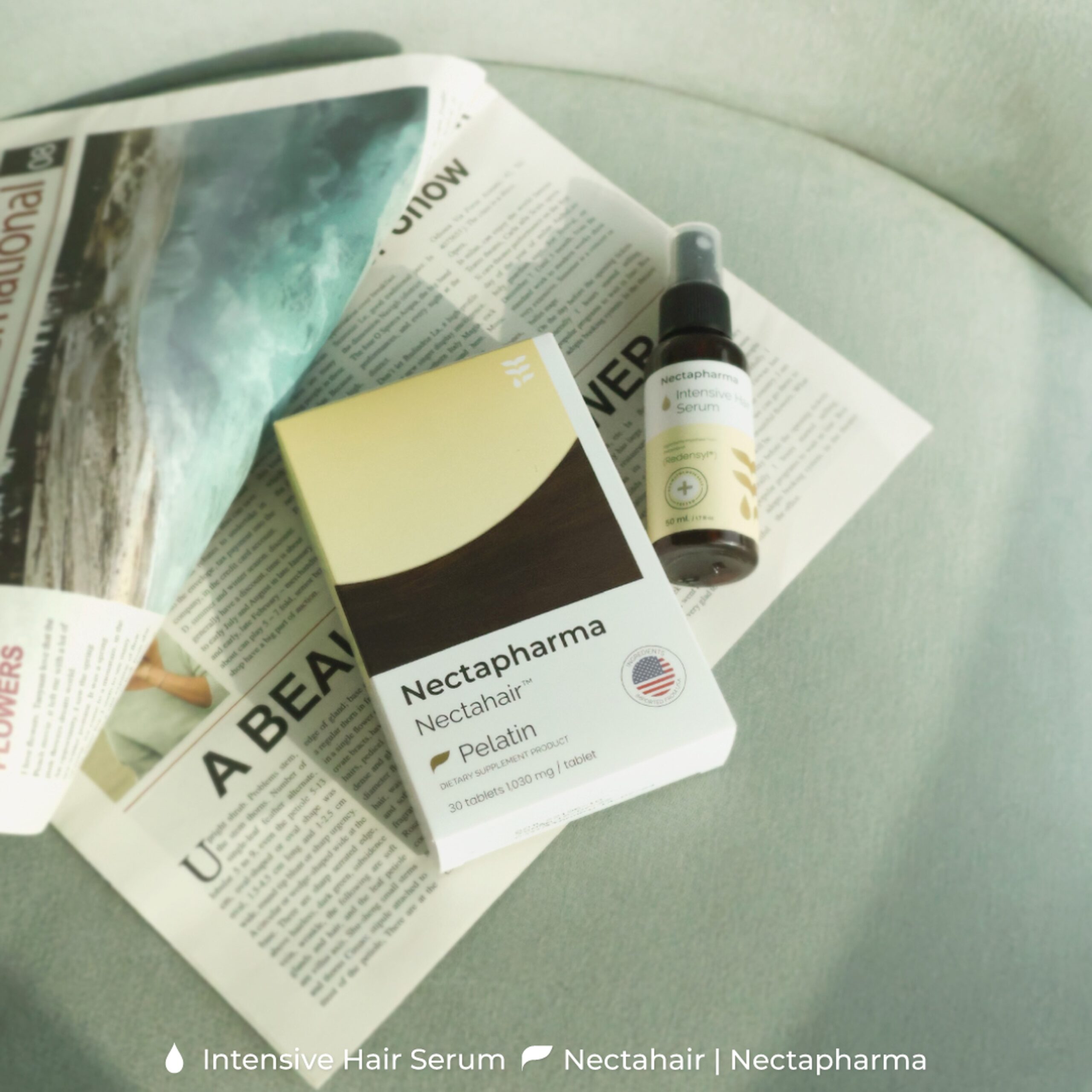 ผมสวยช่วยเสริมความมั่นใจ เสริมบุคลิกภาพ ปัญหาผมร่วงเป็นอีกหนึ่งปัจจัยที่ทำให้ไม่ว่าใครก็ทำให้สูญเสียความมั่นใจ ส่งผลไปถึงบุคลิกภาพ กลายเป็นอีกหนึ่งอุปสรรคด้านความรู้สึกเชื่อมั่นในตัวเอง Nectapharma Serum + Nectahair Vitamin Pelatin เซรั่ม วิตามิน ลดผมร่วง ผมบาง ปลูกผม หัวล้าน และผลิตภัณฑ์อาหารเสริมผม จึงขอเสริมความมั่นใจ ช่วยลดปัญหาผมร่วง และสนับสนุนการสร้างเส้นผมใหม่ที่แข็งแรง ผสานคุณสมบัติด้วยการบำรุงอย่างครบถ้วนทั้งภายนอกและภายใน ด้วยเซรั่มที่มีส่วนผสม Redensyl, Capixyl และ Procapil ควบคู่ไปกับการทาน Nectahair Vitamin ช่วยลดฮอร์โมน DHT ที่เป็นสาเหตุหลักของผมร่วง