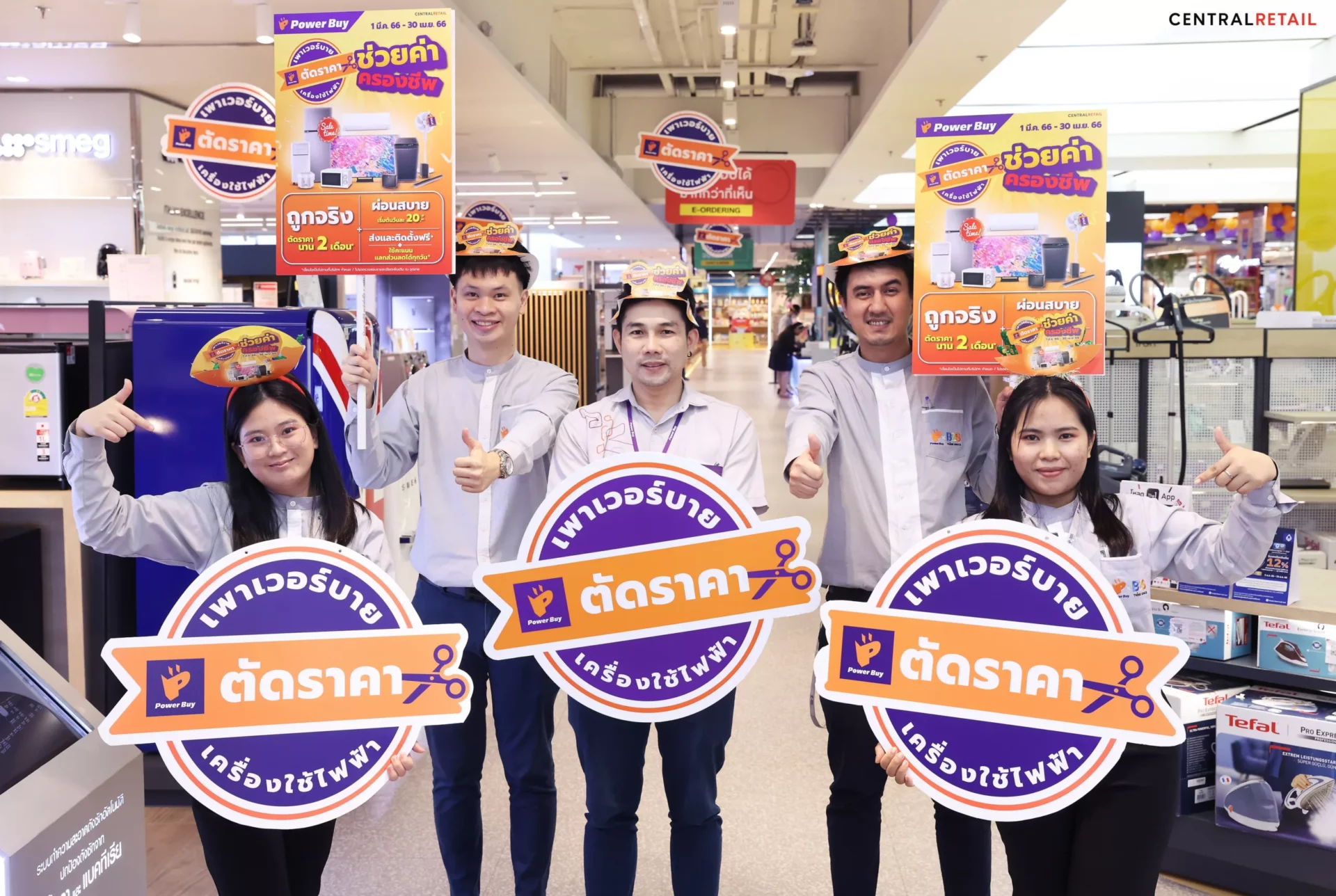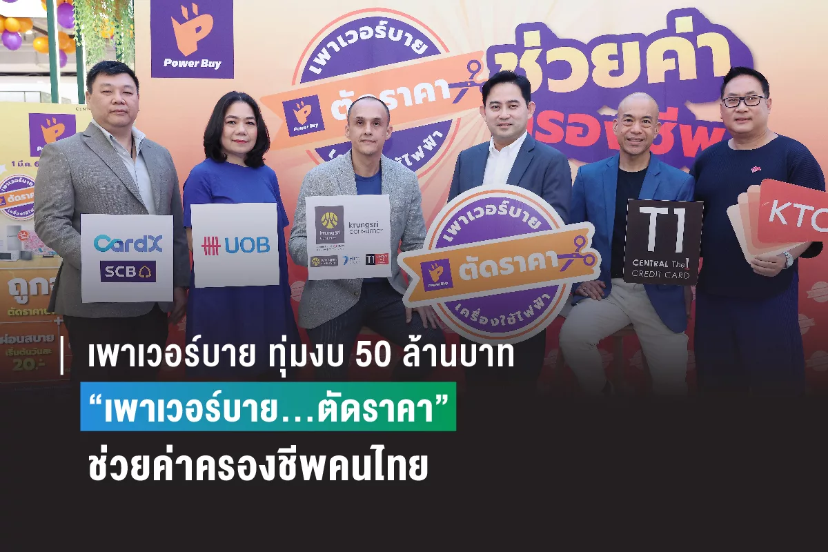 เพาเวอร์บาย ในเครือเซ็นทรัล รีเทล ทุ่มงบกว่า 50 ล้านบาท เปิดตัวบิ๊กแคมเปญ “เพาเวอร์บาย…ตัดราคา” พร้อมยืนเคียงข้างประชาชนในทุกสถานการณ์เศรษฐกิจ ทุกช่วงเวลา ลดแรงครั้งใหญ่ ตรึงราคาเครื่องใช้ไฟฟ้านาน 2 เดือน พบโปรสุดเร้าใจกว่า 500 รายการ เพิ่มความคุ้มค่ายิ่งขึ้นด้วยการจับมือ 8 พันธมิตรบัตรเครดิตชั้นนำ นำโดย บัตรเครดิต เซ็นทรัล เดอะวัน, บัตรเซ็นทรัล เดอะวัน เฟิร์สช้อยส์, บัตรเครดิตกรุงศรี, บัตรกรุงศรีเฟิร์สช้อยส์, บัตรเครดิตไทยพาณิชย์ และคาร์ดเอกซ์, บัตรเครดิตเคทีซี, บัตรเครดิตยูโอบี และบัตรเครดิตซิตี้ มอบอภิสิทธิ์พิเศษในการช้อป “ผ่อนสบายเริ่มต้นเพียงวันละ 20 บาท-แลกคะแนนลดเพิ่ม-รับเครดิตเงินคืน” ทุกวัน พร้อมบริการส่งและติดตั้งฟรี ลดจัดเต็มทุกแพลตฟอร์ม ที่เพาเวอร์บาย ทุกสาขาทั่วประเทศ ช่องทางออนไลน์ เว็บไซต์ www.powerbuy.co.th และ powerbuy app ตั้งแต่วันนี้ถึง 30 เมษายน 2566