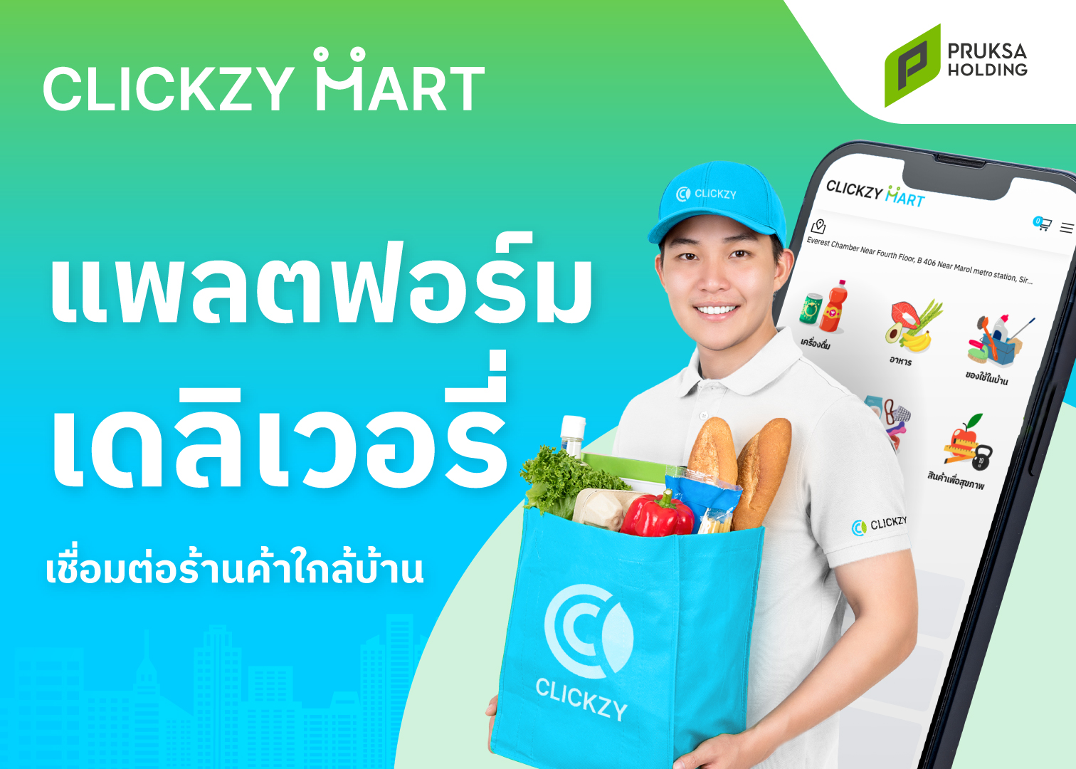 นายบุญไทย แก้วโชติ ประธานเจ้าหน้าที่บริหาร บริษัท ซินเนอร์จี โกรท จำกัด ผู้บริหารกลุ่มงานสตาร์ทอัพ ในเครือ พฤกษา โฮลดิ้ง กล่าวว่า ปัจจุบันตลาดซูเปอร์มาร์เก็ตออนไลน์มีการเติบโตอย่างรวดเร็ว ซึ่งคาดว่าจะมีมูลค่าราว 50 ล้านล้านบาท ในปี 2570 ขณะที่ผู้บริโภคกลุ่ม Millennials หรือ Gen Y (อายุ 25-40 ปี) ซึ่งเป็นฐานผู้บริโภคสำคัญ อยู่ในวัยทำงาน และมีกำลังซื้อ มักต้องเผชิญกับปัญหาการขาดเวลา ปัญหาการจราจรบนท้องถนน ความแออัดของร้านค้า ความเครียดที่เกิดจากการตัดสินใจว่าจะทำอาหารอะไรในแต่ละวัน ตลอดจนปัญหาจากการจัดส่งแบบเก่าที่ต้องเลือกเวลาในการจัดส่ง และมีค่าจัดส่งที่สูง ขณะที่ผู้บริโภคกลุ่มนี้ซึ่งเติบโตมาในยุคดิจิทัล ให้ความสำคัญกับความสะดวกสบาย การประหยัดเวลา และสนใจสิ่งแวดล้อม โดยมีการใช้เวลาบนโลกออนไลน์เฉลี่ย 8 ชั่วโมง 55 นาทีต่อวัน และพร้อมที่จะลงทุนในสินค้าและประสบการณ์ที่เพิ่มคุณภาพชีวิตและความสุขของตนเอง จึงเป็นที่มาที่ทำให้ พฤกษา โฮลดิ้ง ตัดสินใจเพิ่มบริการเดลิเวอรี Clickzy Mart (คลิกซิมาร์ท) ภายใต้แนวคิด ‘Local Market and Premium Healthy Groceries’ เพื่อตอบโจทย์การใช้ชีวิตของคนยุคใหม่และมุ่งเน้นส่งเสริมร้านค้าท้องถิ่นให้มีรายได้เพิ่มขึ้น พร้อมการจัดส่งที่รวดเร็วภายใน 1 ชั่วโมง* ซึ่งสอดคล้องตามกรอบแนวคิด ‘อยู่ดี มีสุข’ ของกลุ่มพฤกษา โฮลดิ้ง