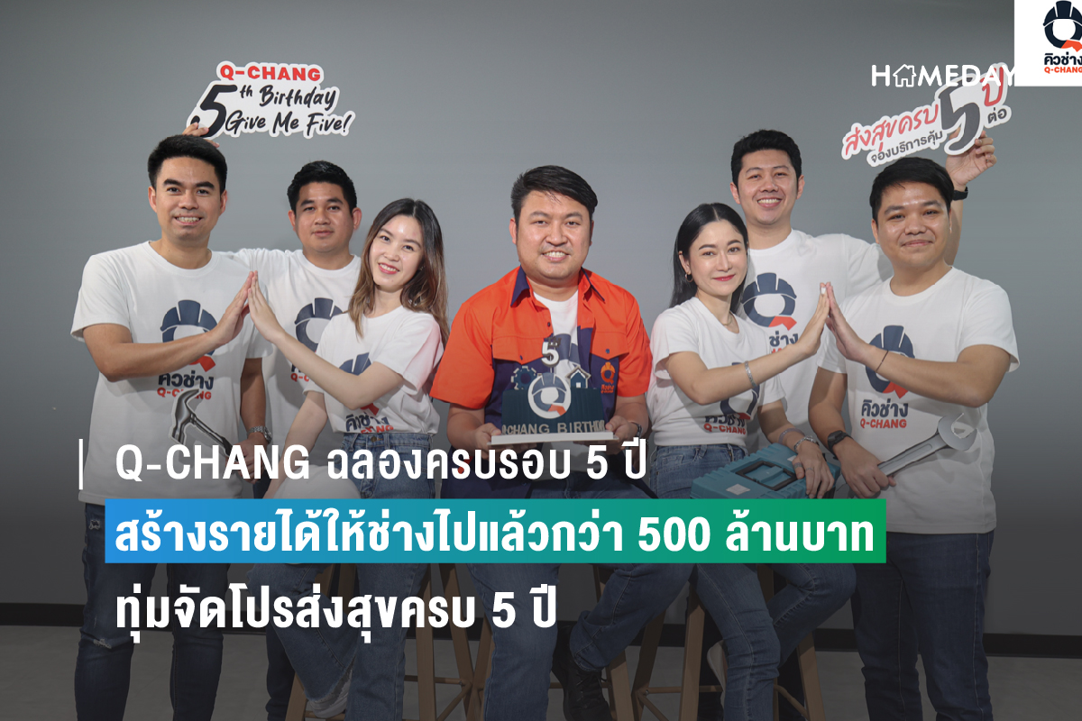 Q-CHANG (คิวช่าง) ฉลองครบรอบ 5 ปี สร้างรายได้ให้ช่างไปแล้วกว่า 500 ล้านบาท จัดโปรส่งสุขครบ 5 ปี ภายใต้แคมเปญ Q-CHANG 5th Birthday Give Me Five! พร้อมหน้าเดินขยายธุรกิจ ตอกย้ำวิสัยทัศน์ “WE’VE GOT YOUR BACK” พร้อมแบ็คอัพทุกเรื่องบ้านให้ลูกค้าและช่างมีชีวิตที่ดีขึ้น