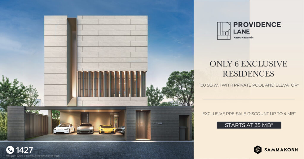 บริษัท สัมมากร จำกัด (มหาชน) ตอกย้ำความสำเร็จโครงการบ้านลักชัวรี เปิดตัวโครงการ “Providence Lane เกษตร-นวมินทร์” บ้านเดี่ยวหรู 3 ชั้น ภายใต้ปรัชญา Bauhaus Style ดีไซน์เรียบง่ายเหนือกาลเวลา พร้อมฟังก์ชันตอบโจทย์ไลฟ์สไตล์คนเมือง มอบความเป็นส่วนตัวสูงสุดและสะท้อนตัวตน “Defining Me” ในทุกรายละเอียด บนที่สุดแห่งทำเลศักยภาพ นิยามใหม่แห่งความสำเร็จของชีวิตที่สมบูรณ์แบบ