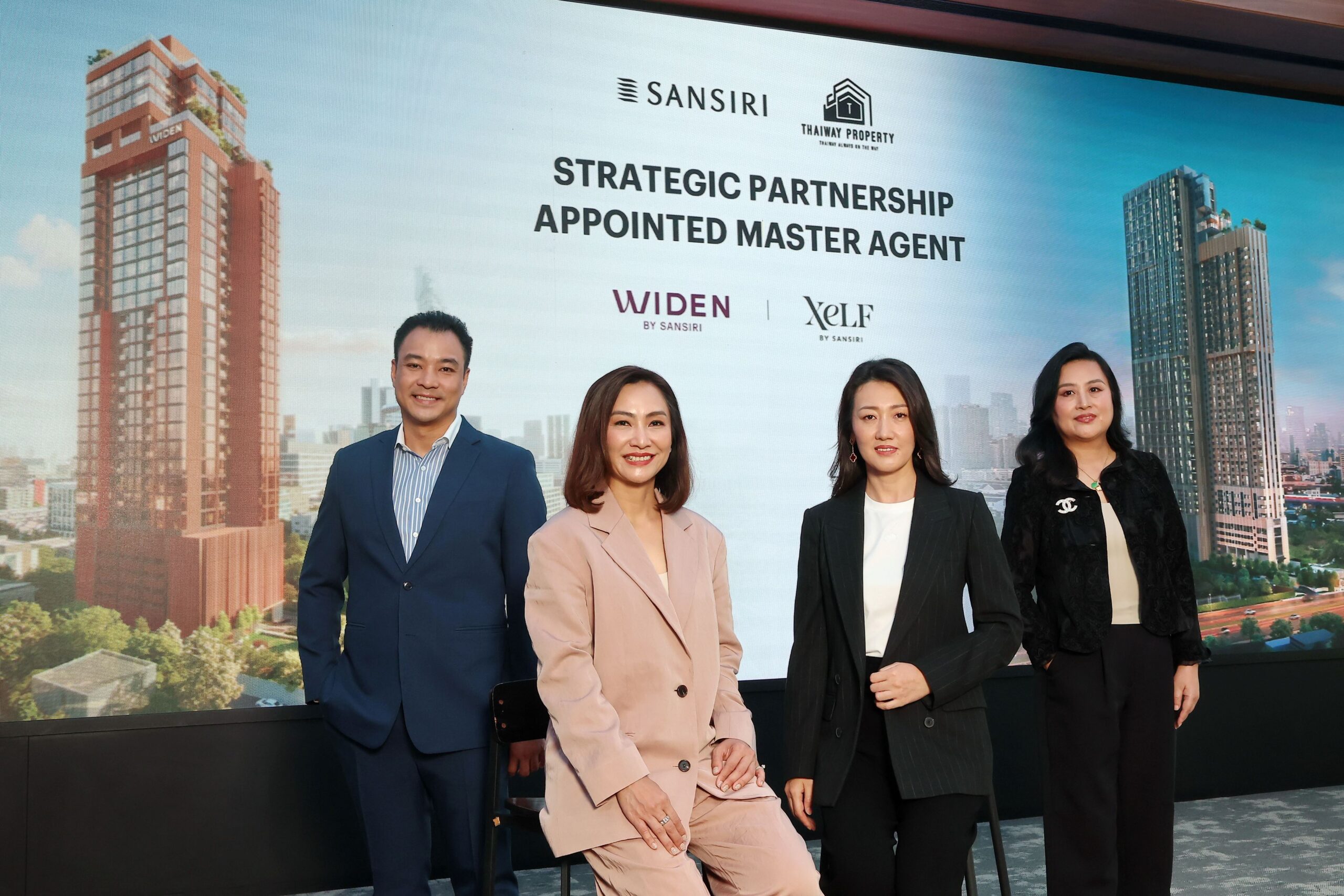 บริษัท แสนสิริ จำกัด (มหาชน) ผู้นำอสังหาไทยฯ อันดับหนึ่งในใจต่างชาติที่มียอดขายสูงสุดและได้รับการยอมรับยาวนานกว่า 11 ปี นำโดย ไปรยา บุนนาค (ที่สองจากซ้าย) ประธานผู้บริหารฝ่ายขายและพัฒนาธุรกิจตลาดต่างประเทศ และ สมัตถ์คม ต่างวิวัฒน์ (ซ้ายสุด) ผู้ช่วยกรรมการผู้จัดการฝ่ายพัฒนาโครงการคอนโดมิเนียม ประกาศความร่วมมือครั้งสำคัญกับ ไทยเวย์ พร็อพเพอร์ตี้ แต่งตั้งเป็น Master Agent หรือตัวแทนขายหลักอย่างเป็นทางการ เพื่อรุกตลาดต่างชาติอย่างเต็มตัว เตรียมเปิดขาย 2 คอนโดมิเนียม แบรนด์ใหม่ในทำเลศักยภาพอย่าง “WIDEN by Sansiri” และ “XELF by Sansiri” ตั้งเป้ากวาดยอดขาย 2 โครงการรวม 2,400 ล้านบาท เตรียมคิกออฟ Global Launch เปิดขายพร้อมกันทั่วโลก ทั้งลูกค้าไทยและต่างชาติ ในงานพรีเซลล์ 27-28 ก.ย. นี้ ที่ สำนักขายของทั้งสองโครงการและตัวแทนขายไทยเวย์