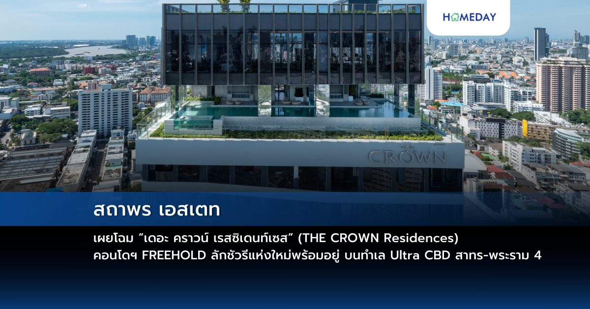สร้างเสร็จสมบูรณ์แล้ว โครงการ “เดอะ คราวน์ เรสซิเดนท์เซส” คอนโดมิเนียมไฮไรซ์ FREEHOLD ระดับลักชัวรีพร้อมอยู่แห่งใหม่ล่าสุดจากสถาพร เอสเตท บนทำเลศักยภาพใจกลาง Hub of Bangkok Connections เชื่อมต่อ 2 CBDs สุขุมวิท และสีลม – สาทร ใกล้รถไฟฟ้า MRT ทั้งสถานีลุมพินี และคลองเตย ที่ครบ จบทุกฟังก์ชันของการใช้ชีวิต ในราคาเริ่มต้น 6.9 – 25 ล้านบาท* เตรียมเปิดให้ชมห้องตัวอย่างบนตึกจริง วิวจริง วันที่ 19 ตุลาคม ศกนี้