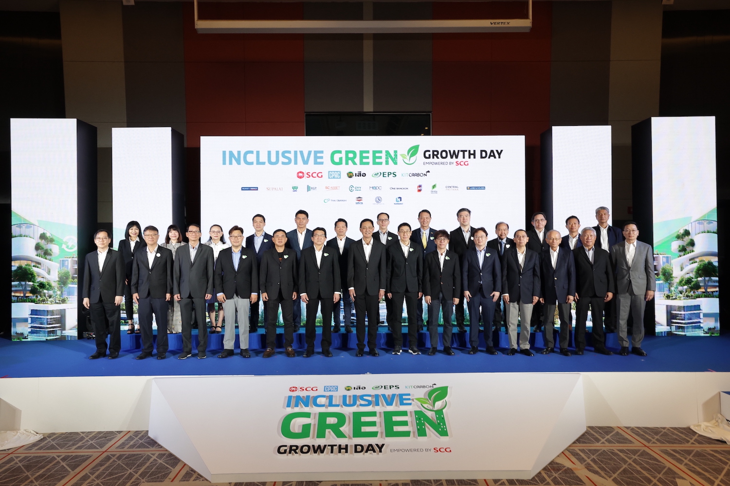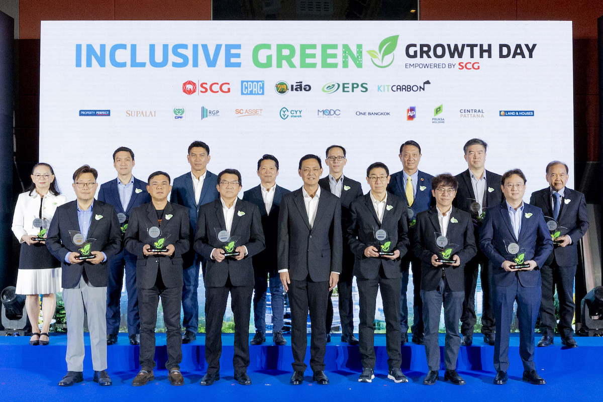 งาน Inclusive Green Growth Days Empowered by SCG : เติบโตและยั่งยืนไปด้วยกัน จัดขึ้น ณ Hall 1 อาคารอเนกประสงค์ชั้น 10 เอสซีจี สำนักงานใหญ่ บางซื่อ โดย Cement and Green Solution Business ภายใต้เอสซีจี จัดขึ้นเพื่อมอบโล่เกียรติคุณให้กับ กลุ่ม Developer ชั้นนำของเมืองไทย เป็นการขอบคุณที่ร่วมกันสร้างอุตสาหกรรมก่อสร้างสีเขียว ด้วยการเลือกใช้ ผลิตภัณฑ์รักษ์โลกในกลุ่มซีเมนต์ คอนกรีต และกรีนโซลูชัน ในอาคารระดับ Masterpiece ของไทย เพื่อมุ่งสู่เป้าหมาย Net Zero นับเป็นครั้งแรกในประเทศไทยกับการประกาศจุดยืนในการร่วมกัน ระหว่างบริษัทอสังหาริมทรัพย์ชั้นนำกับเอสซีจีเพื่อเดินหน้าสู่สังคมคาร์บอนต่ำ (Low Carbon) และสร้างสังคมสีเขียวแบบยั่งยืน