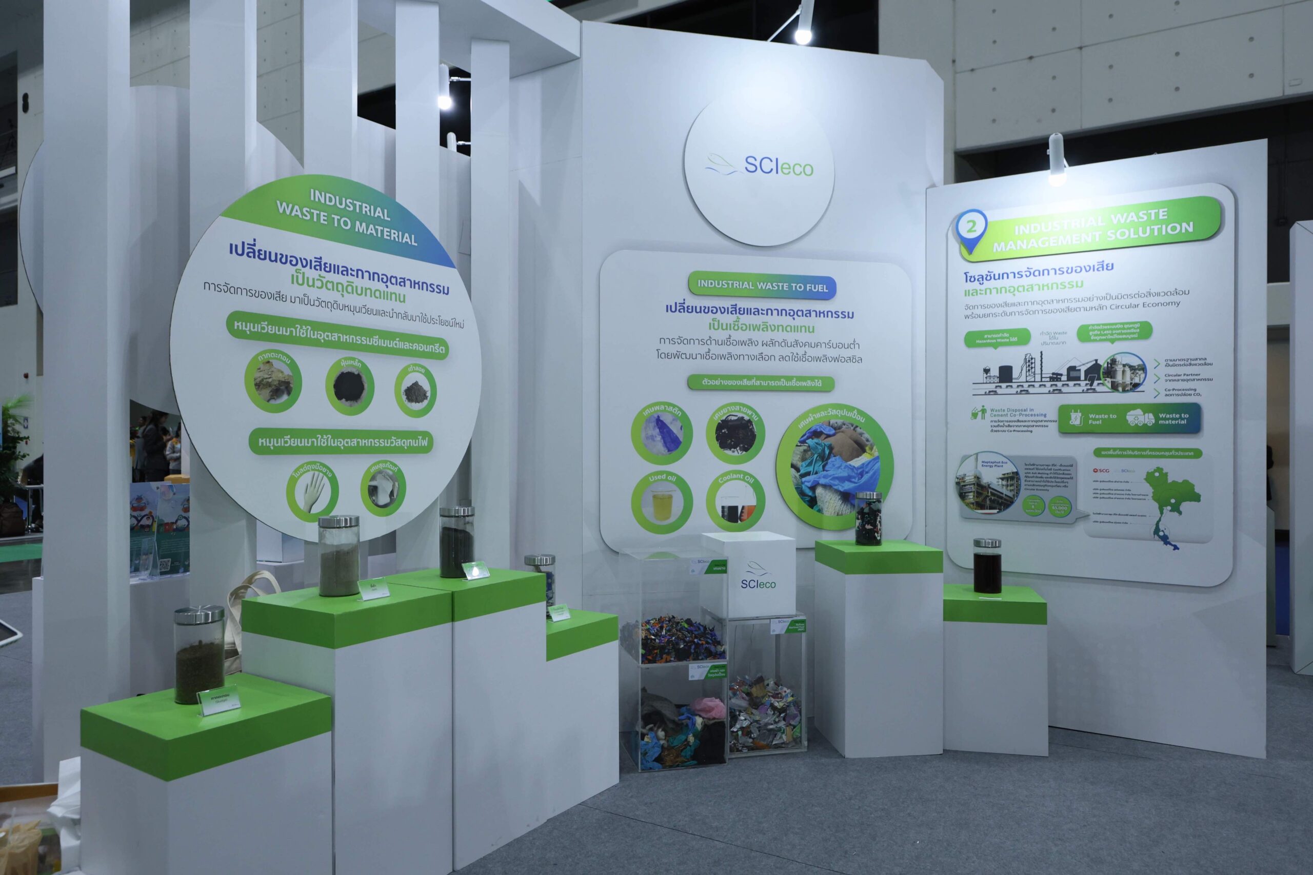 สำหรับ SCIeco มีโซลูชันด้านการจัดการ Waste ทั้งหมด 4 ด้าน ได้แก่ Environmental Service Solutions บริการตรวจวิเคราะห์สิ่งแวดล้อมแบบครบวงจร ด้วยห้องปฏิบัติการที่ได้รับการขึ้นทะเบียนห้องปฏิบัติการวิเคราะห์เอกชน จากกรมโรงงานอุตสาหกรรมและกรมสวัสดิการและคุ้มครองแรงงาน อาทิ บริการติดตั้งและตรวจสอบระบบติดตามคุณภาพอากาศจากปล่องโรงงานอุตสาหกรรม บริการตรวจวัดคุณภาพน้ำ น้ำทิ้ง และกากของเสีย บริการตรวจวัดมลพิษอากาศจากปล่องระบาย เป็นต้น, Industrial Waste Management การจัดการของเสียและกากอุตสาหกรรม ด้วยวิธีการเผาร่วมกับปูนซีเมนต์ ซึ่งเป็นวิธีการกำจัดที่เป็นมิตรต่อสิ่งแวดล้อมตามหลัก Circular Economy โดยเริ่มแรกจะต้องวิเคราะห์และตรวจสอบคุณสมบัติทั้งทางเคมี และกายภาพของอุตสาหกรรมดังกล่าว เพื่อให้มั่นใจว่าสามารถกำจัด ได้อย่างปลอดภัยทั้งด้านอาชีวอนามัย และสิ่งแวดล้อม ซึ่งจะถูกกำจัดด้วยระบบปิดอุณหภูมิสูงถึง