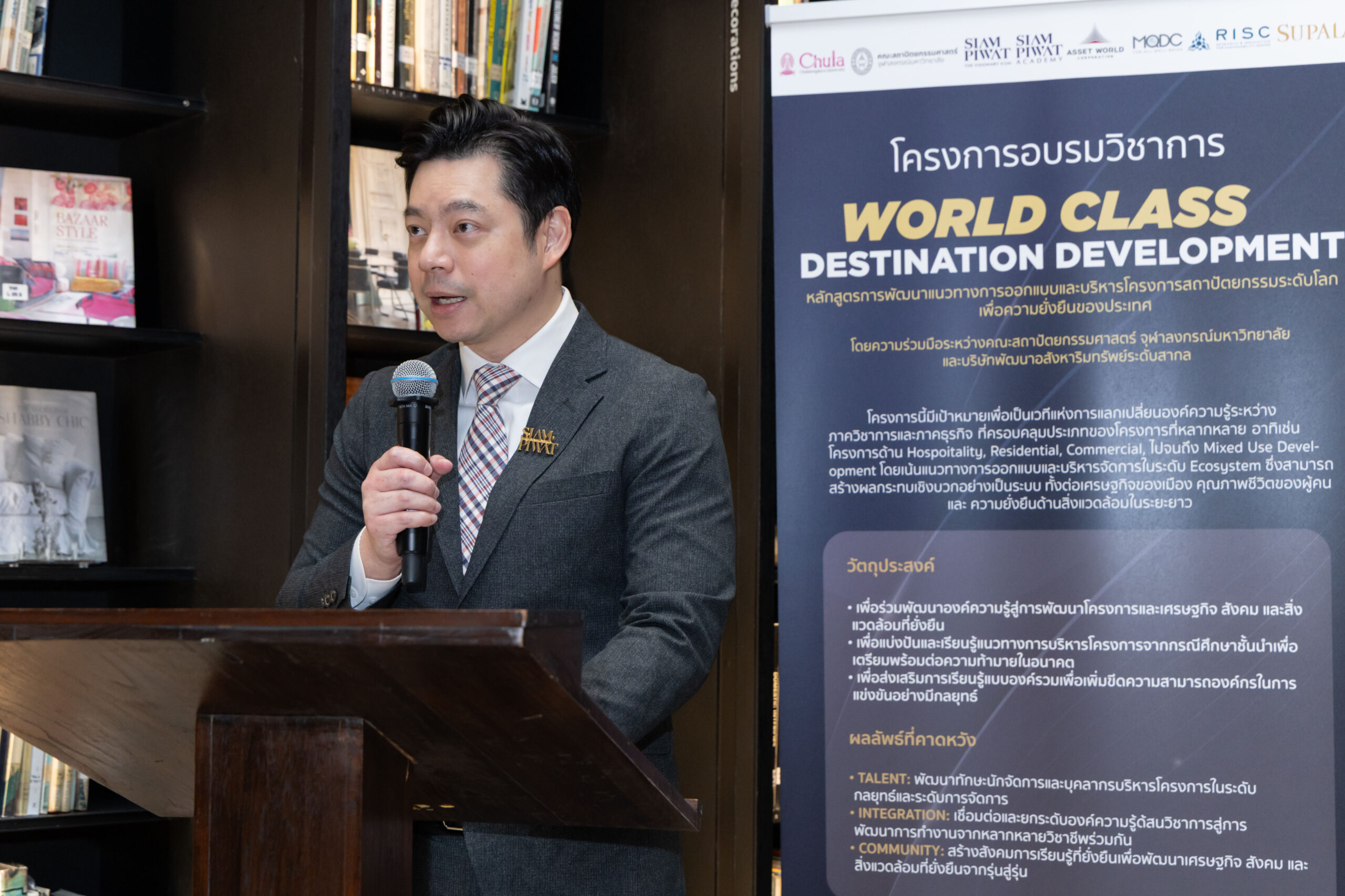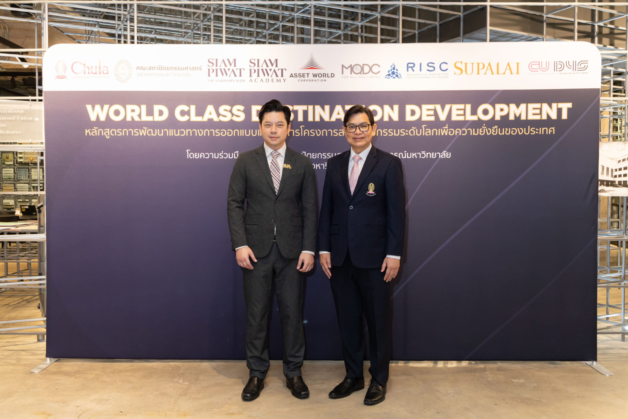 คณะสถาปัตยกรรมศาสตร์ จุฬาลงกรณ์มหาวิทยาลัย จับมือกับ บริษัท สยามพิวรรธน์ จำกัด และสยามพิวรรธน์ อคาเดมี (Siam Piwat Academy) พร้อมกับพันธมิตรภาคธุรกิจชั้นนำ ได้แก่ บริษัท แอสเสท เวิรด์ คอร์ป จำกัด (มหาชน) (AWC), บริษัท แมกโนเลีย ควอลิตี้ ดีเวล็อปเม้นต์ คอร์ปอเรชั่น จำกัด (MQDC), และ บริษัท ศุภาลัย จำกัด (มหาชน) นักพัฒนาชั้นนำของประเทศไทยครอบคลุมโครงการด้านการบริการและการท่องเที่ยว โครงการที่พักอาศัยระดับพรีเมียม ศูนย์การค้าและพื้นที่ค้าปลีกเชิงประสบการณ์ ตลอดจนโครงการมิกซ์ยูสขนาดใหญ่ เปิดตัวหลักสูตร World Class Destination Development เพื่อเป็นเวทีแห่งการแลกเปลี่ยนองค์ความรู้ระหว่างภาคการศึกษาและภาคธุรกิจ สร้างผลกระทบเชิงบวกอย่างเป็นระบบ ทั้งต่อเศรษฐกิจของเมือง คุณภาพชีวิตของผู้คน และความยั่งยืนด้านสิ่งแวดล้อมในระยะยาว รวมทั้งผลักดันส่งเสริมการพัฒนาทักษะและศักยภาพบุคลากรในอุตสาหกรรมอสังหาริมทรัพย์ และยกระดับความสามารถของคนไทยให้พร้อมแข่งขันบนเวทีโลก ผ่านการเรียนรู้จากผู้เชี่ยวชาญชั้นนำจากไทยและต่างประเทศ พร้อมกิจกรรมศึกษาดูงานกรณีศึกษาระดับโลก ณ สถานที่จริง ในระหว่างวันที่ 19 ก.ค. – 30 ส.ค 2568 จัดกิจกรรมโดยศูนย์ออกแบบเพื่อสังคม จุฬาลงกรณ์มหาวิทยาลัย (CU D4S)