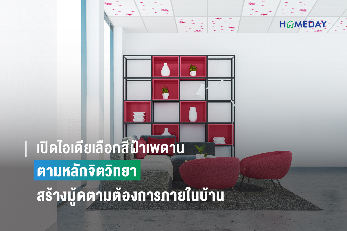 ว่ากันด้วยเรื่องของสีในบ้านที่คนส่วนใหญ่มักให้ความสำคัญกับสีของผนังที่สร้างบรรยากาศภายในบ้าน แต่น้อยคนนักที่จะคำนึงถึงสีของฝ้าเพดานว่าส่งผลต่ออารมณ์ความรู้สึกของผู้อยู่อาศัยไม่ต่างกัน เพราะเมื่อแสงตกกระทบกับสีของเพดานจะส่งผลต่อความสว่างและโทนสีองค์รวมภายในห้องนั้นๆ อีกด้วย อีกทั้งยังเป็นส่วนหนึ่งที่ช่วยปรับอารมณ์ของผู้อยู่อาศัยให้ผ่อนคลายและสบายตา มาดูกันว่าเราจะเลือกใช้สีฝ้าเพดานในห้องต่างๆ ของบ้านกันอย่างไร