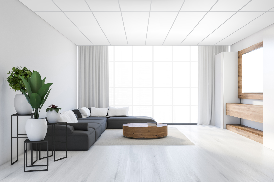 สีขาวเป็นสีที่สามารถใช้ได้ทุกห้องภายในบ้าน นอกจากจะช่วยให้ห้องสว่าง สะอาดตาแล้ว ยังให้ความรู้สึกกว้างขวาง ปลอดโปร่ง ผ่อนคลาย ไม่อึดอัด ทั้งยังใช้คู่กับผนังสีต่างๆได้ ยิ่งหากใช้คู่กับผนังสีเข้มกว่าจะช่วยทำให้เพดานดูสูงมากขึ้น และเหมาะสำหรับห้องนอน ห้องทำงาน ห้องสำหรับเด็ก ทั้งนี้ถ้าบ้านคุณมีฝ้าทีบาร์อยู่แล้ว เลือกเปลี่ยนแผ่นฝ้าเป็น แผ่นฝ้าทีบาร์เปเปอร์ทัช ตราช้าง ลายหยาดเพชร รุ่นฮีท บล็อค ช่วยลดความร้อนที่มาจากใต้หลังคา สามารถสะท้อนรังสีความร้อนได้ถึง 89% ในการช่วยลดความร้อนที่เข้ามาสะสมภายในบ้านหรืออาคาร