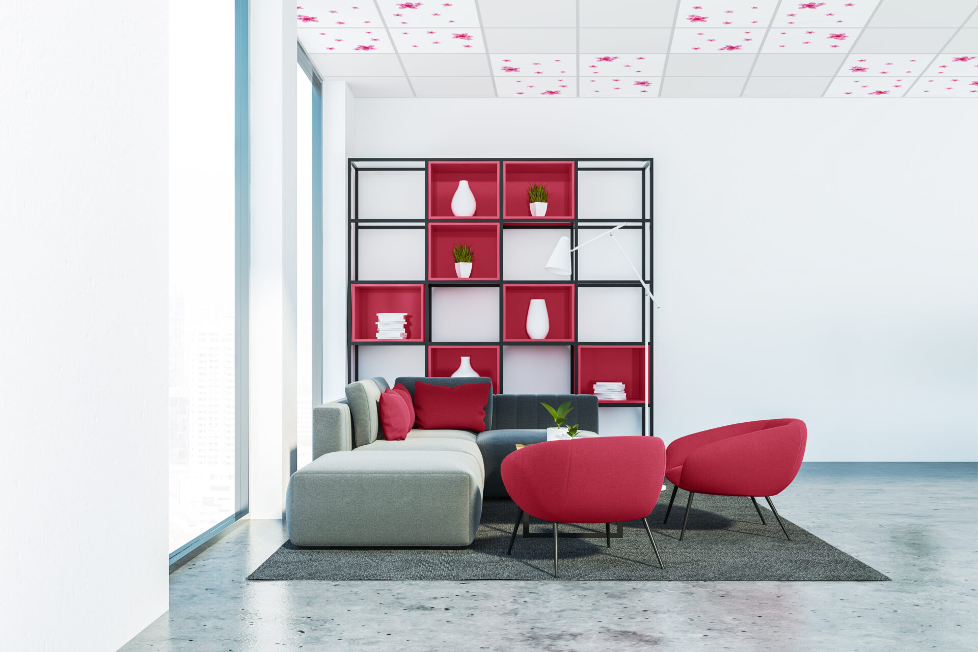 สีชมพูเป็นสีที่ให้ความรู้สึกอบอุ่น สดใส น่ารัก และอ่อนโยน สามารถสร้างบรรยากาศที่เหมาะสำหรับบริบทที่ต้องการความรักและความผูกพันภายในบ้าน การใช้สีชมพูในบ้านสามารถสร้างความอบอุ่น อิ่มเอม เหมาะกับห้องรับแขก ห้องเด็กเล็ก หากต้องการเพิ่มลูกเล่นด้วยลวดลายบนฝ้าเพดานแนะนำให้เลือกใช้ แผ่นฝ้าทีบาร์เปเปอร์ทัช ตราช้าง ลาย “ชวนชม” สีสันสวยงามน่ามอง คุณภาพดี รับรองด้วย มอก.219-2552