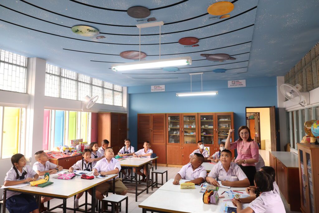 นายอนุพงษ์ กล่าวเพิ่มเติมว่า ยิปซัมตราช้าง ได้ทำการปรับปรุงพื้นที่การเรียนรู้ภายในโรงเรียนวัดหนองอ้อ จังหวัดราชบุรี ซึ่งเป็นโรงเรียนอนุบาลและประถมศึกษามีนักเรียน 129 คน โดยมีความจำเป็นเร่งด่วนในการซ่อมแซม โดยเฉพาะเพดานห้องเรียนที่เสียหายอย่างหนักจากสภาพอากาศ ปัญหารั่วซึมจากหลังคา และการใช้งานที่ยาวนาน โดยเรามีการออกแบบและเลือกยิปซัมโซลูชั่นตราช้างของเรามาใช้ให้เหมาะกับการใช้งาน เช่น ยิปซัมแผ่นเอคโค่บล็อค ตราช้าง จะช่วยลดเสียงสะท้อนในห้องเรียนช่วยลดความก้องของเสียง ทำให้การฟังชัดเจนขึ้น สร้างสมาธิในการเรียนและเข้าใจเนื้อหามากขึ้น ทำให้การเรียนการสอนมีประสิทธิภาพมากขึ้น แผ่นฮีทบล็อค ตราช้าง จะช่วยกันร้อน ลดความร้อนในห้องเรียน ซึ่งจะช่วยทั้งกันร้อน กันชื้นและกันเชื้อราได้ด้วย ซึ่งช่วยสร้างสภาพแวดล้อมห้องเรียนให้เย็นสบาย รู้สึกสบายตัว แผ่นเวเทอร์บล็อค ตราช้าง สร้างภูมิทัศน์บรรยากาศของห้องเรียนให้ดูสะอาดตา และสวยงาม ด้วยคุณสมบัติ ทนน้ำ กันร้อน กันรา ป้องกันฝ้าบวม แอ่น ย้อย และคราบราดำ และที่สำคัญช่วยสร้างสภาพแวดล้อม และเสริมสร้างบรรยากาศ ที่ช่วยสนับสนุน และกระตุ้นการเรียนรู้ของน้อง ๆ นักเรียนได้เป็นอย่างดี