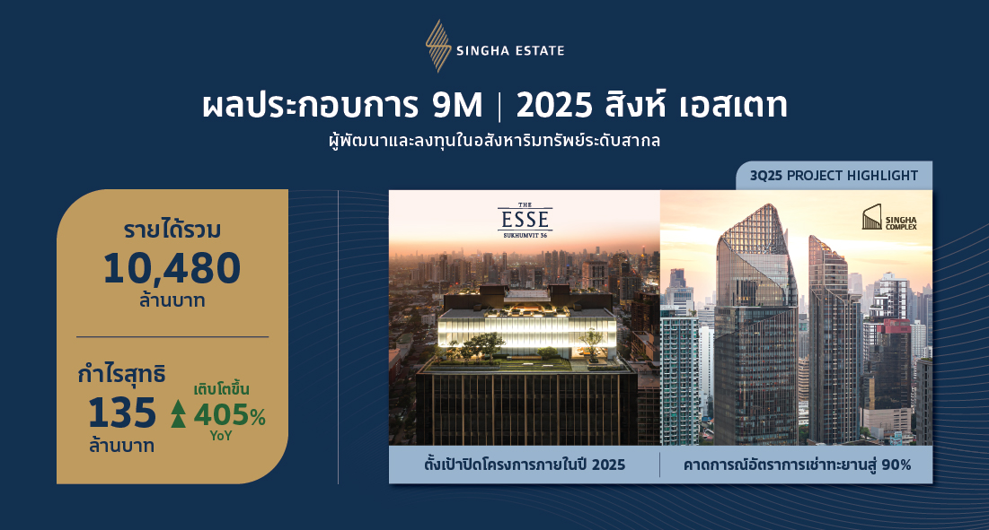นายชัยรัตน์ ศิวะพรพันธ์ ประธานเจ้าหน้าที่บริหาร บริษัท สิงห์ เอสเตท จำกัด (มหาชน) เปิดเผยว่า บริษัทฯ มั่นใจว่าหุ้นกู้ที่จะเสนอขายในครั้งนี้จะได้รับการตอบรับที่ดีจากผู้ลงทุนที่เชื่อมั่นในแบรนด์ “สิงห์ เอสเตท” ถึงแม้ในสภาวะที่ตลาดหุ้นกู้ไทย โดยเฉพาะในกลุ่มอสังหาริมทรัพย์ กำลังเผชิญความท้าทายด้านความเชื่อมั่นก็ตาม แต่ด้วยภาพรวม ผลการดำเนินงานของบริษัทในช่วง 9 เดือนแรกของปี 2568 ยังคงเติบโตตามแผน โดยมีรายได้จากธุรกิจหลักรวม 10,480 ล้านบาท และมีกำไรสุทธิ 135 ล้านบาท เติบโตกว่า 5 เท่าจากปีก่อนหน้า โดยได้รับแรงหนุนจากรายได้ประจำ ในธุรกิจโรงแรมและอาคารสำนักงานที่แข็งแกร่ง อีกทั้งบริษัทยังสามารถยกระดับอัตรากำไร (EBITDA Margin) จาก 23% เป็น 25% สะท้อนประสิทธิภาพด้านการบริหารต้นทุนและการควบคุมค่าใช้จ่ายที่รัดกุม