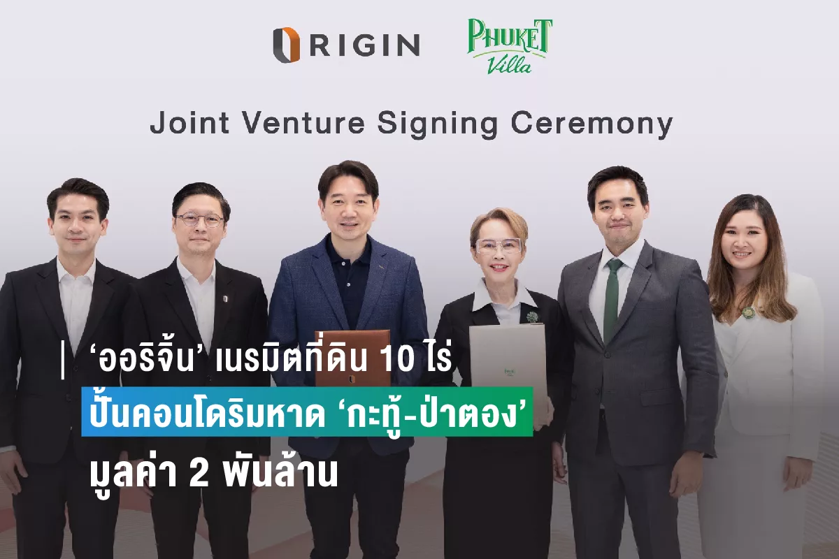 “ออริจิ้น อีอีซี” ต่อยอดกระแสความแรงตลาดคอนโดมิเนียมภูเก็ต ประกาศร่วมทุนบิ๊กดีเวลลอปเปอร์เจ้าถิ่น “ภูเก็ตวิลล่า คอร์ปอเรชั่น” ปั้นโครงการใหม่เปิดขายปี 66 “ดิ ออริจิ้น กะทู้-ป่าตอง” มูลค่าโครงการกว่า 2,100 ล้านบาท เตรียมเนรมิตที่ดินกว่า 10 ไร่บนทำเลทอง คาดเปิดขาย ไตรมาส 2 ปีนี้