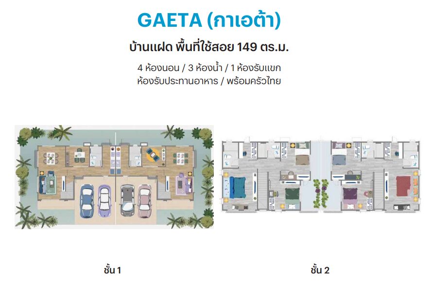 แบบบ้าน แบบบ้าน : C-Complete_Phuket บ้านแบบใหม่ หันทิศเหนือ 4 ห้องนอน 3 ห้องน้ำ ขนาดที่ดิน 62 ตร.ว. พื้นที่ใช้สอย 185 ตร.ม.- ห้องโถงรับแขกขนาดใหญ่ ต่อเนื่องกับห้องอาหารกว้าง พร้อมเชื่อมต