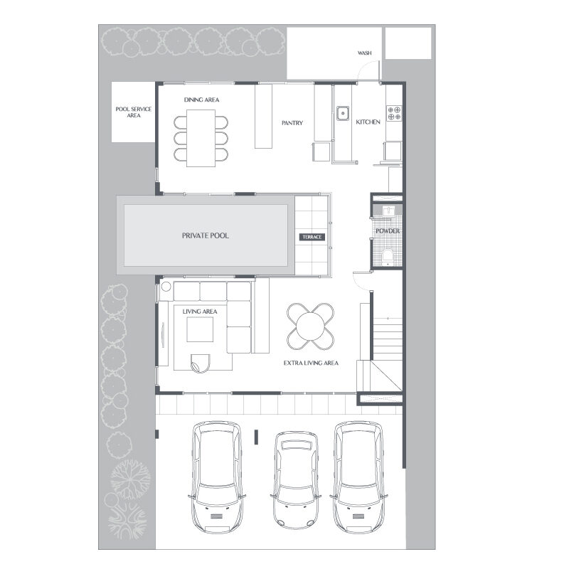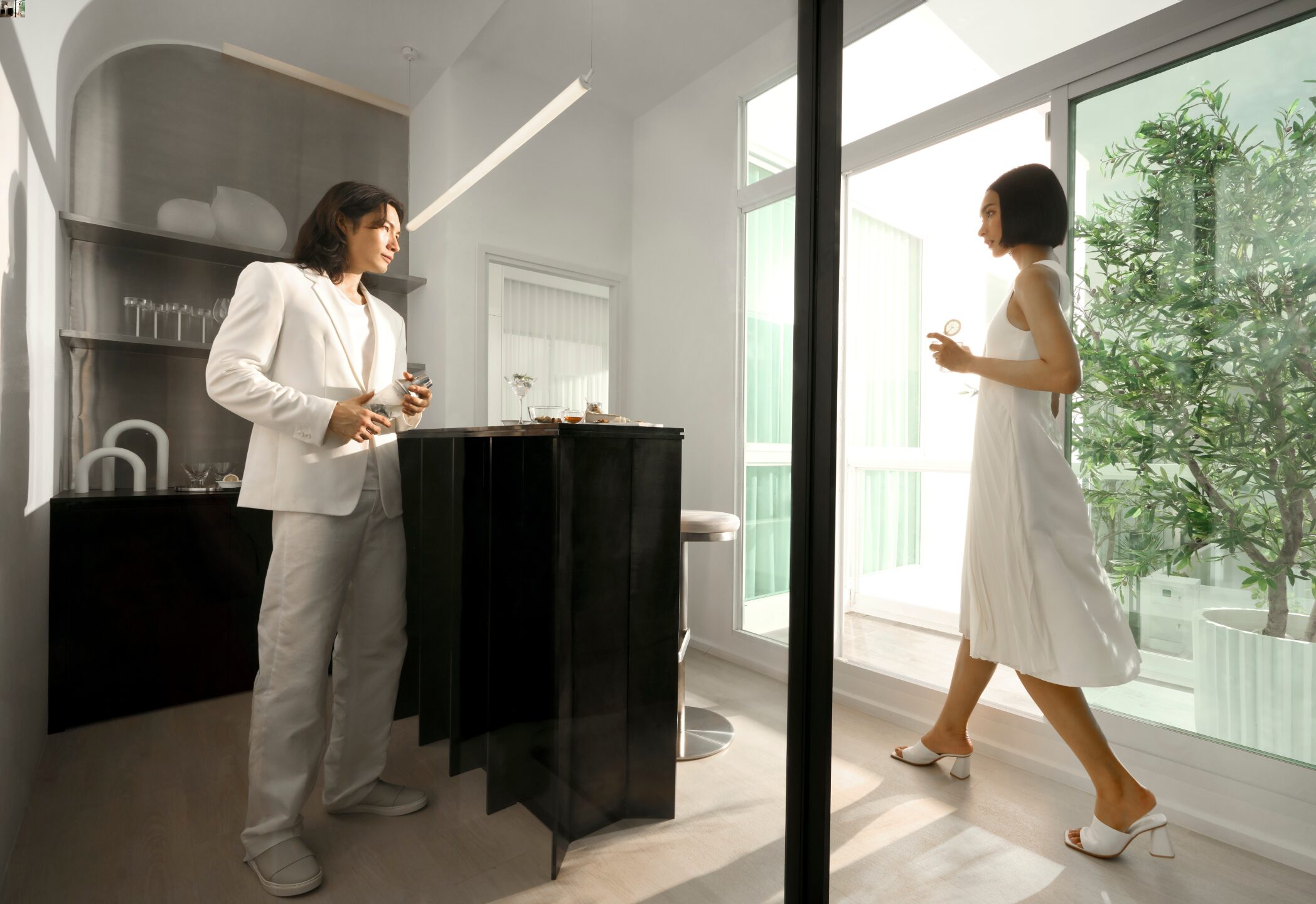 มาเริ่มที่ครัวกันก่อน ลักษณะตัวเคาน์เตอร์ ชั้นวางของ และ Backsplash จะได้เหมือนกันกับห้องขนาด 26.50 ตร.ม. เลยครับ ส่วนฝั่งตรงข้ามจะเป็นพื้นที่ว่าง สำห