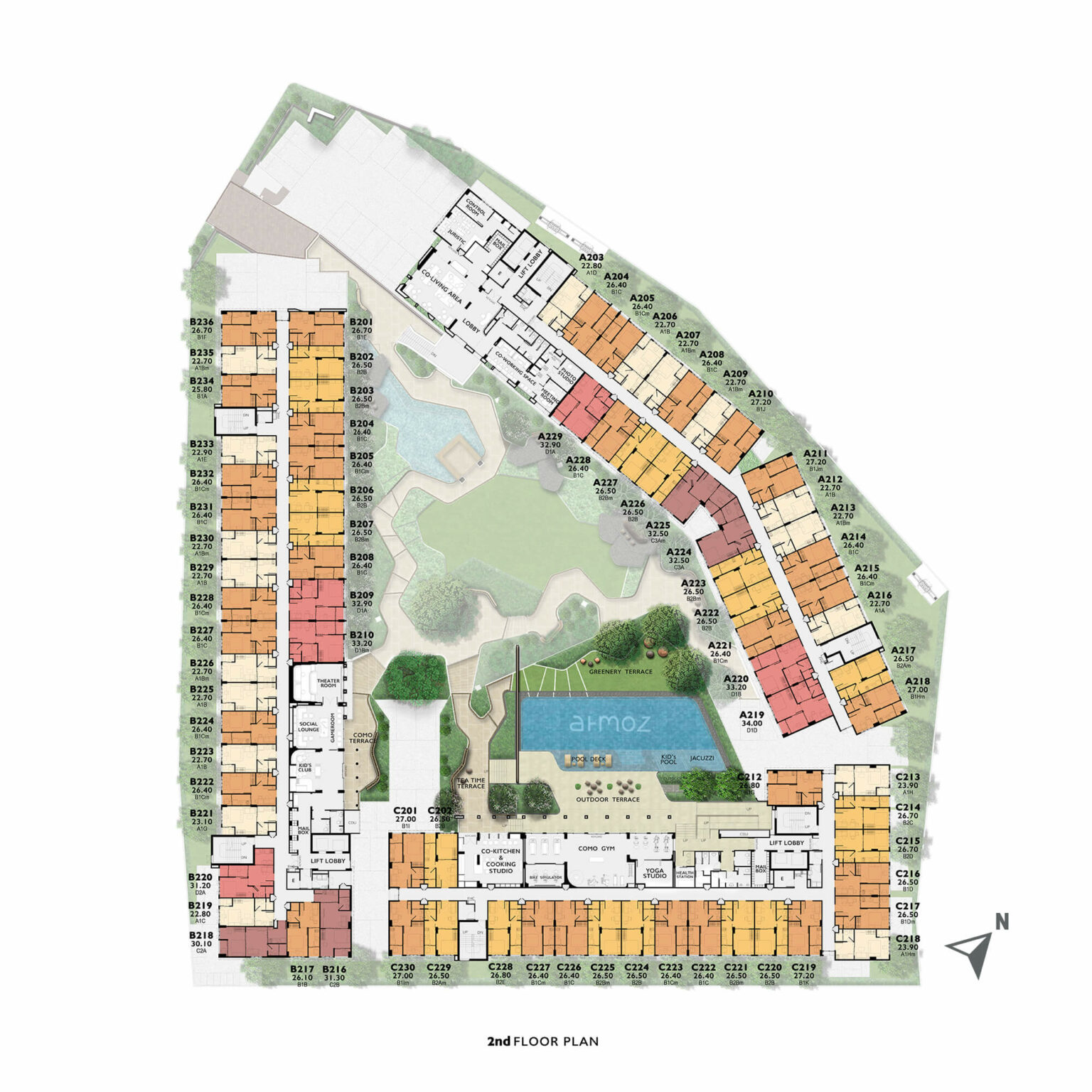 Como Walkway, Relex Space, Greenery Terrace, Swimming Pool, Como Terrace, Pool Deck, Kid’s Pool, Jacuzzi, Outdoor Terrace, Tea Time Terrace, Co-working space, Semi Private Pod, Pod Cast, Photo Studio, Meeting Room,